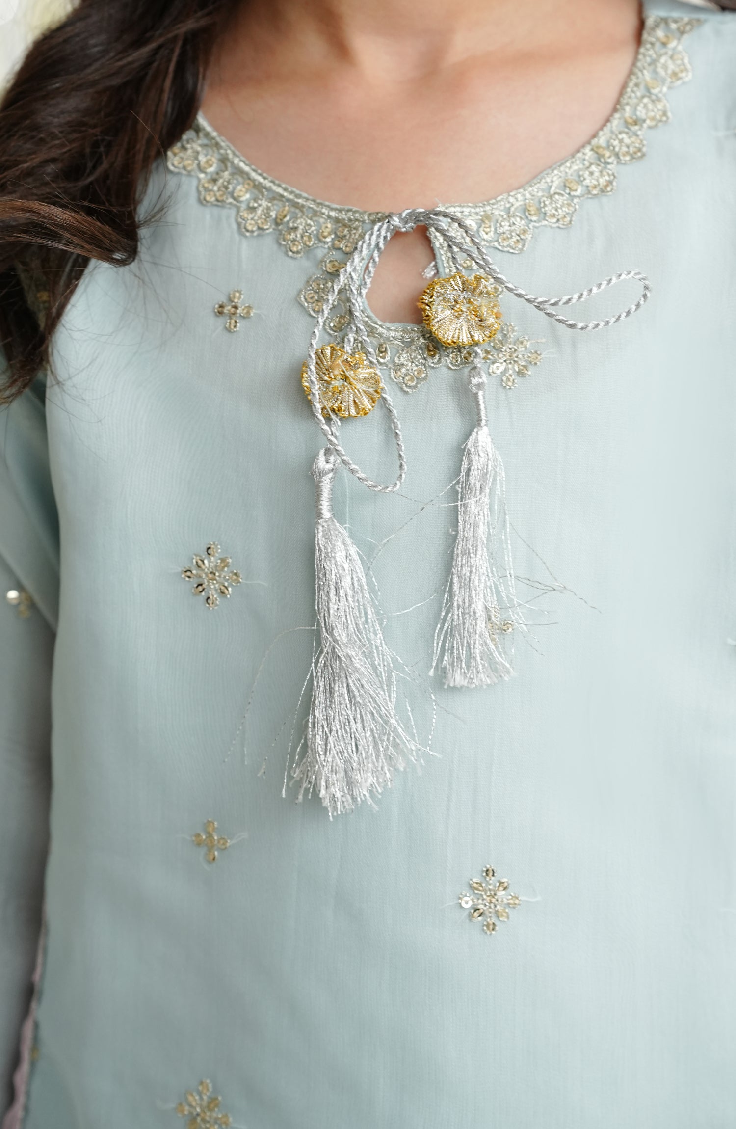 Exclusive Embroidered Organza shirt with Viscose Inner