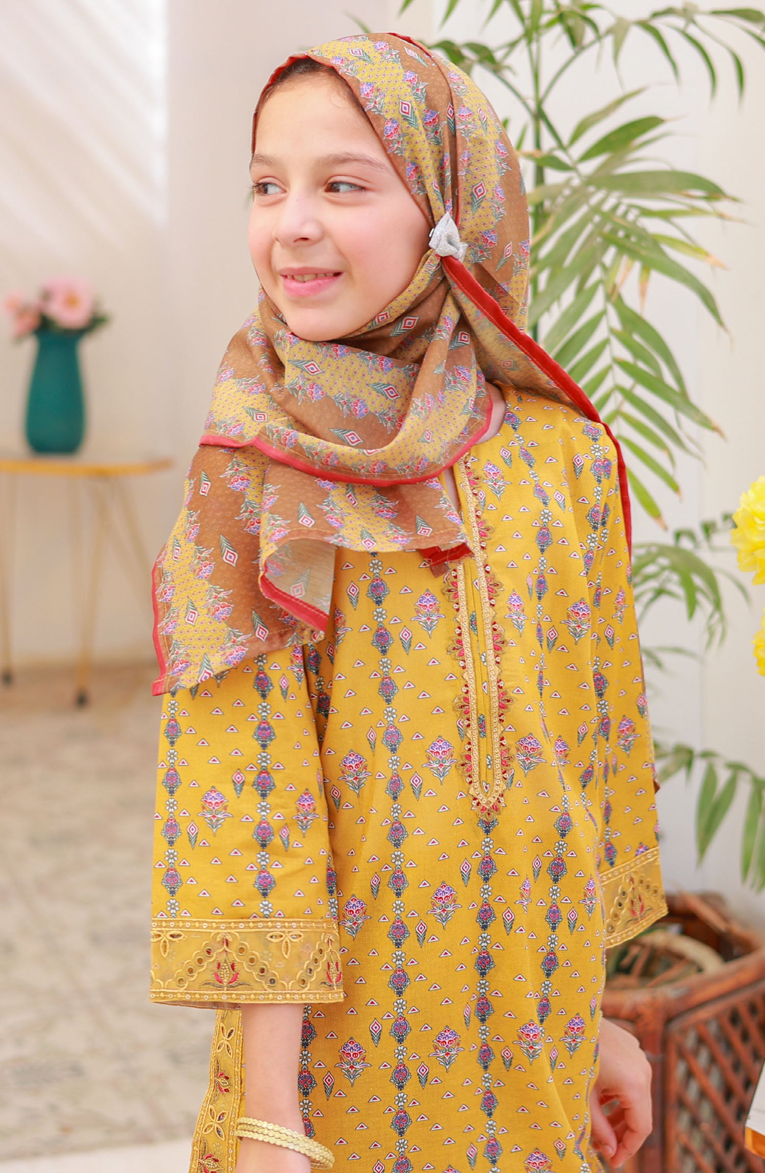 Suntex Fabric Embroidered Lawn Stitched 3 Piece Suit - SH-2535K - SS25EEFE - Yellow - Girls Eid Collection