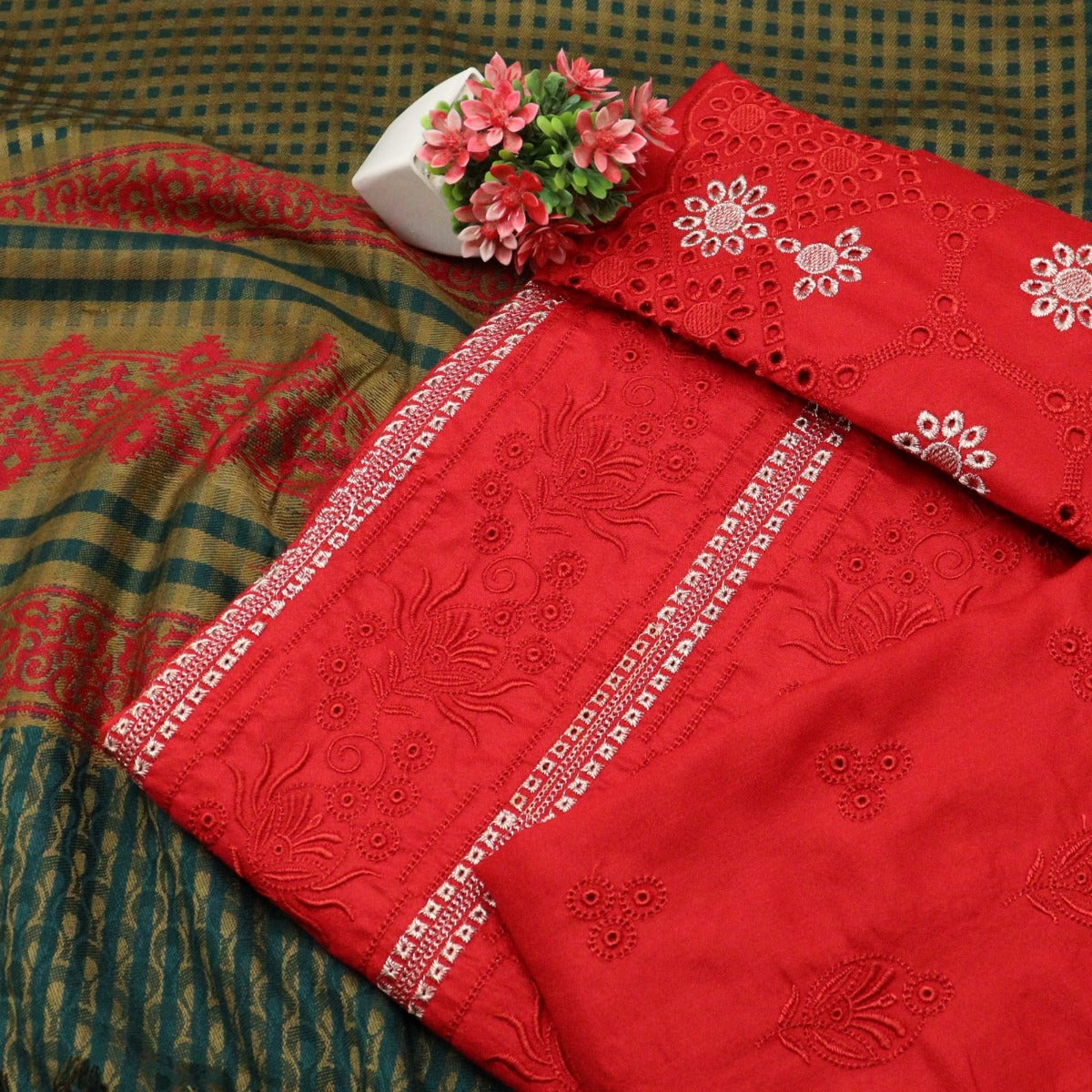 Swati Unstitched Dhanak Embroidered Collection with Wool Shawl has been styled in the image for photography and illustrative purposes.