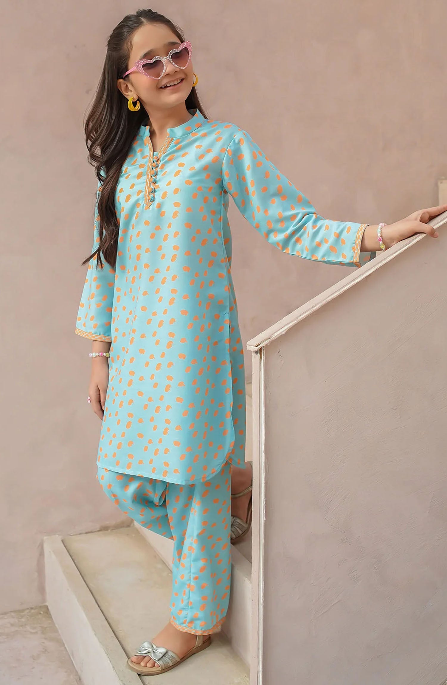 Top: Mint Blue Swiss Lawn Digital Printed Kurta