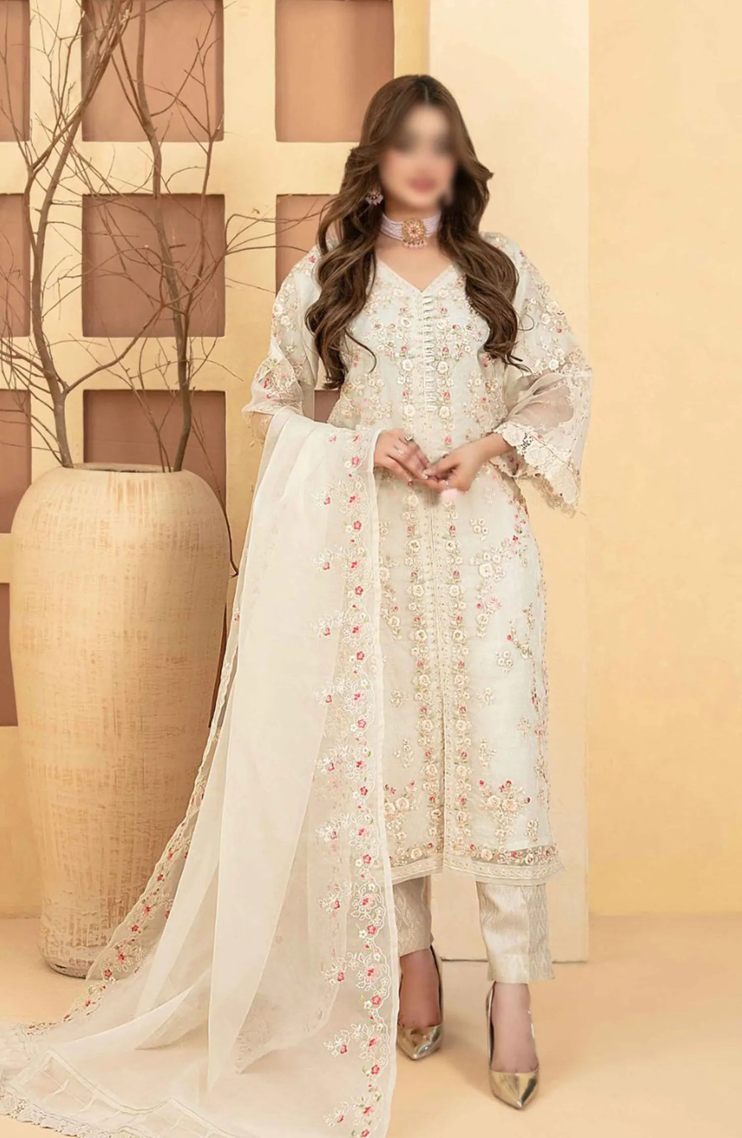 Stitched Fancy Embroiderd Organza Shirt with embellishments