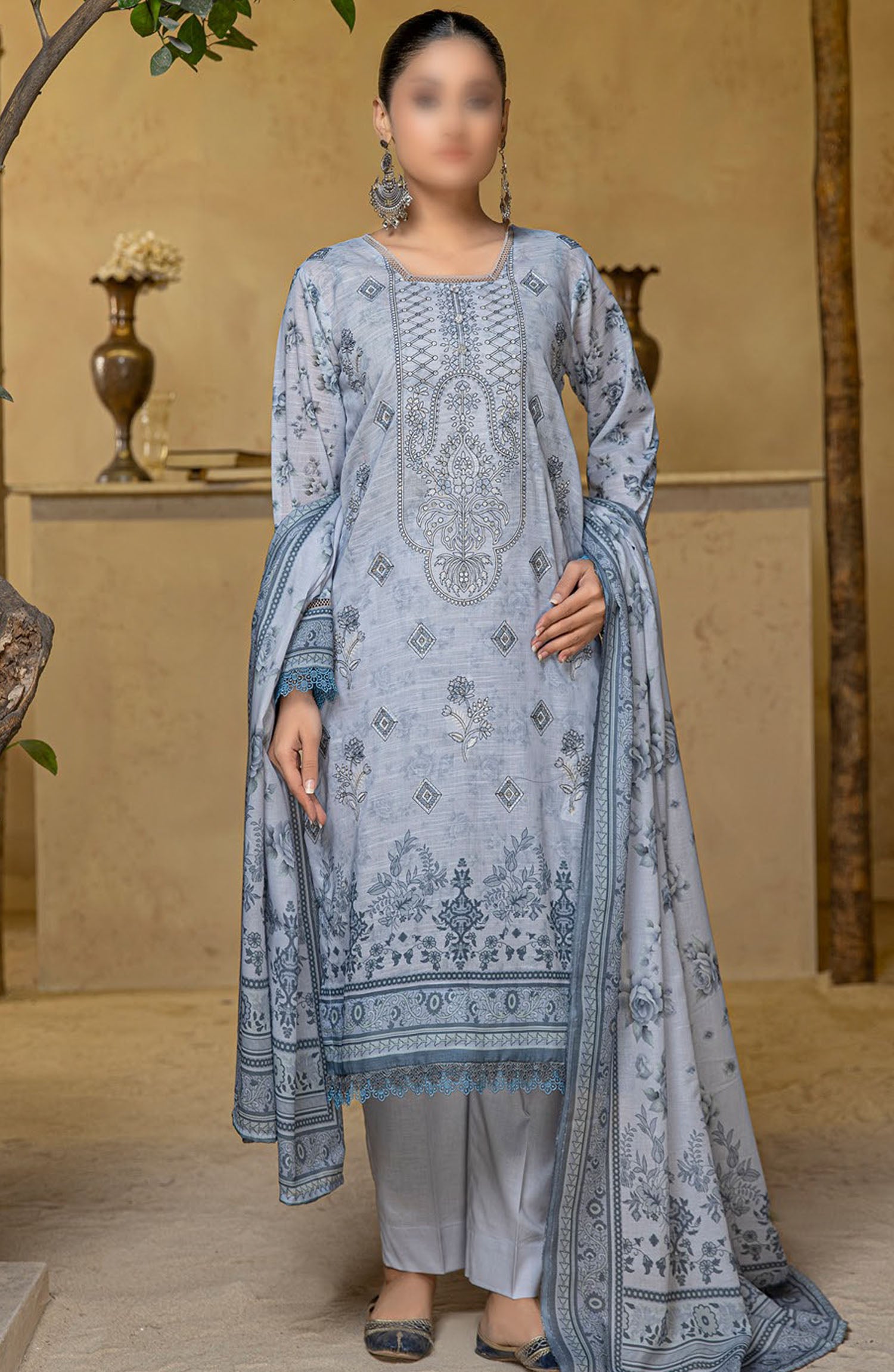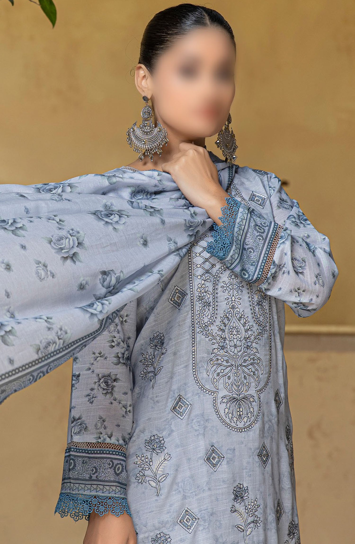 Home Tabeer by Al Karim Embroidered Lawn Unstitched 3 Piece Suit - D-07 - ALK25TFL - Blue - Summer Collection