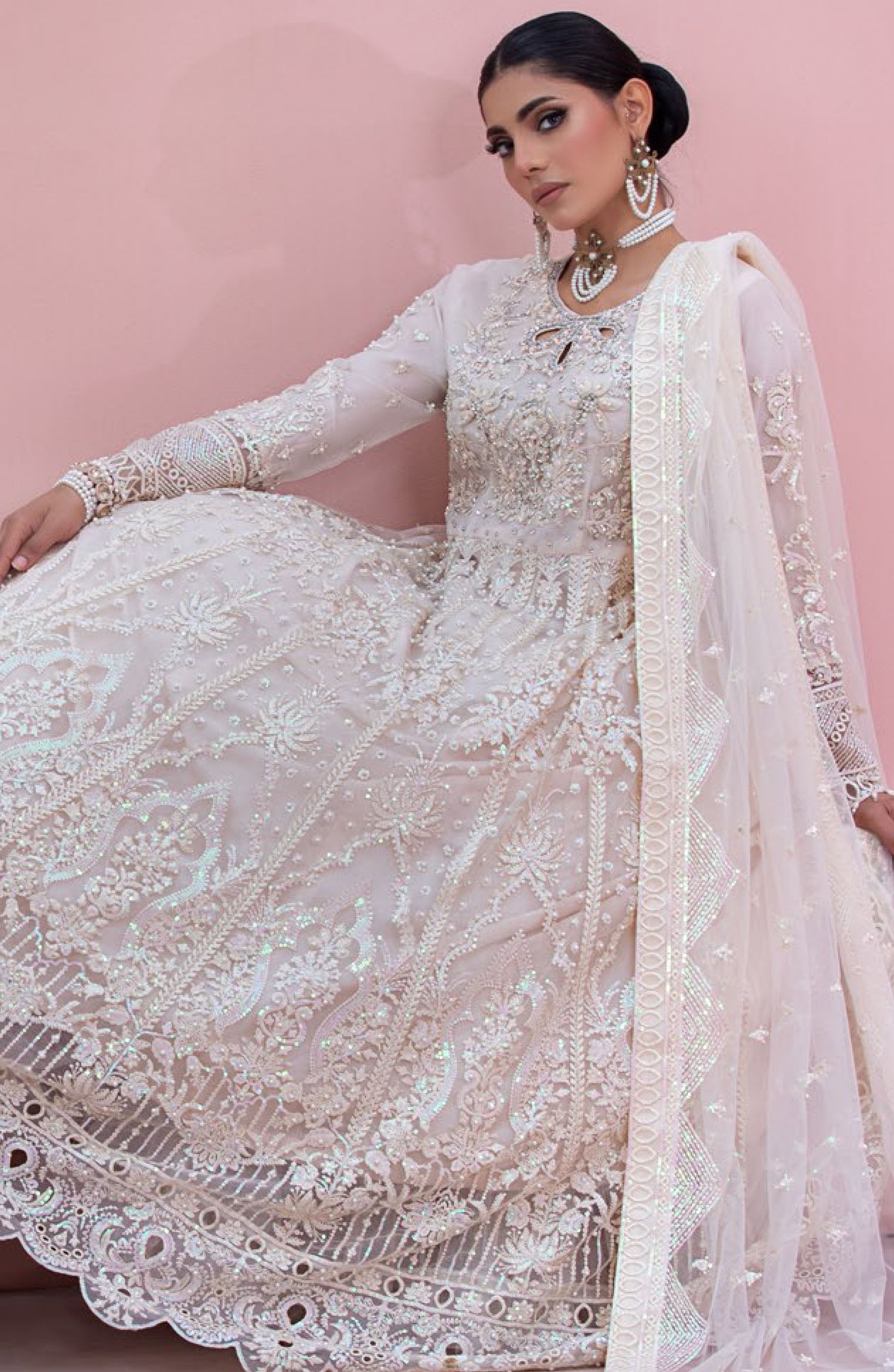 The standard style comes as a long-sleeved kameez with dupatta and trouser/shawlar.