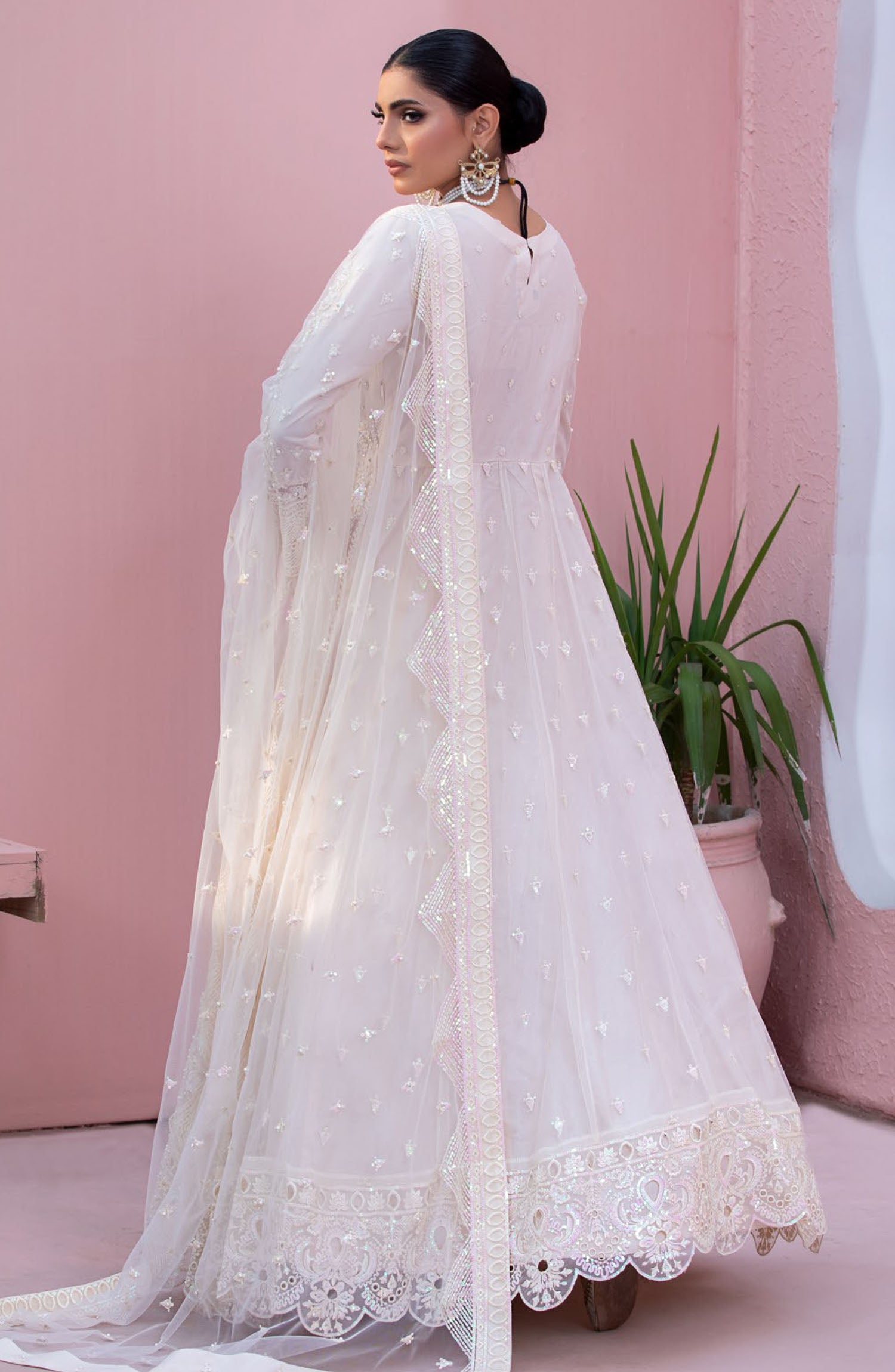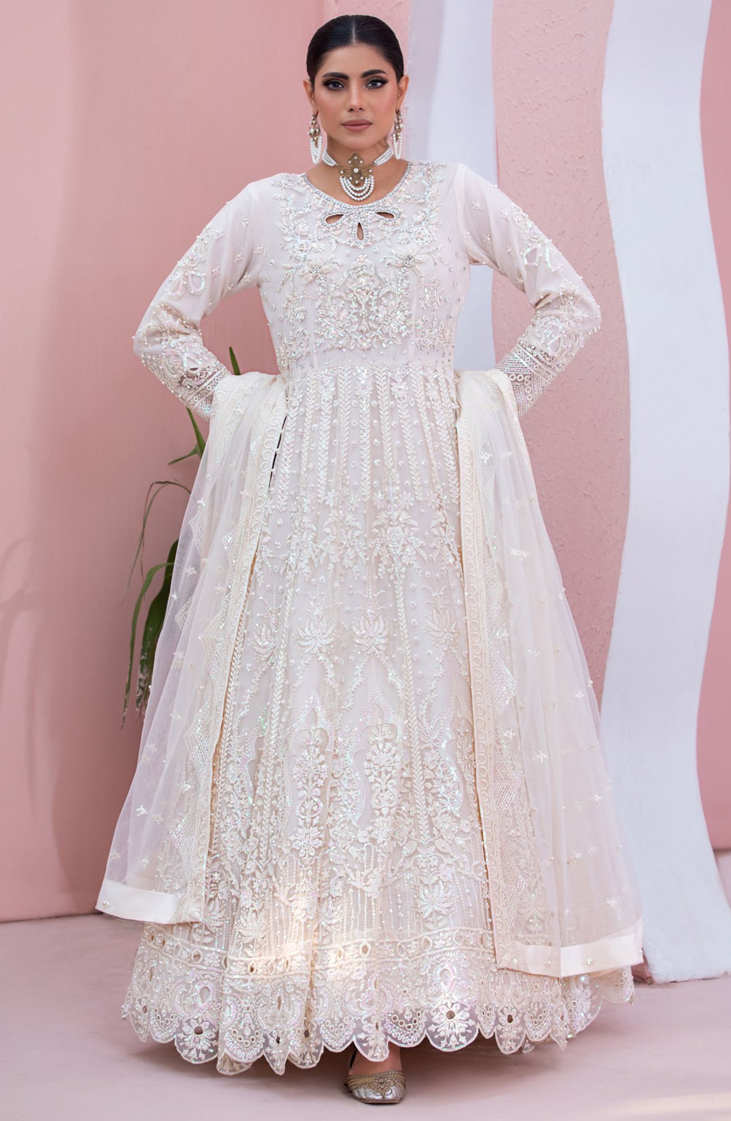 This outfit comprises a net embroidered shirt, It also includes a net embroidered dupatta for a coordinated look. Paired with viscose trouser, completing the ensemble with sophistication and style.