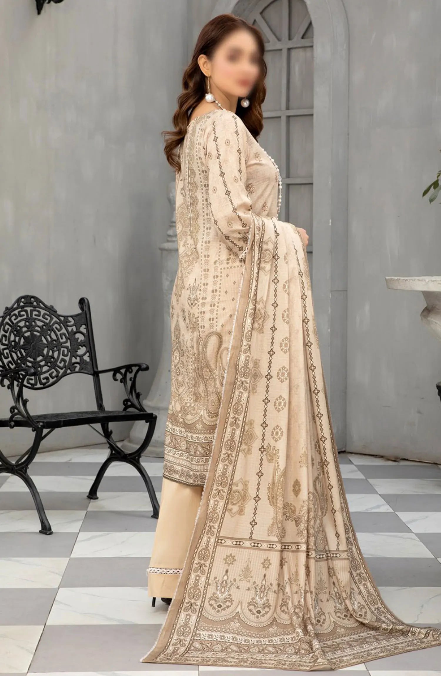 HZ Textile Digital Printed Linen Slub Unstitched 3 Piece Suit - LSD-304 - HZ25LNSL - White - Winter Collection
