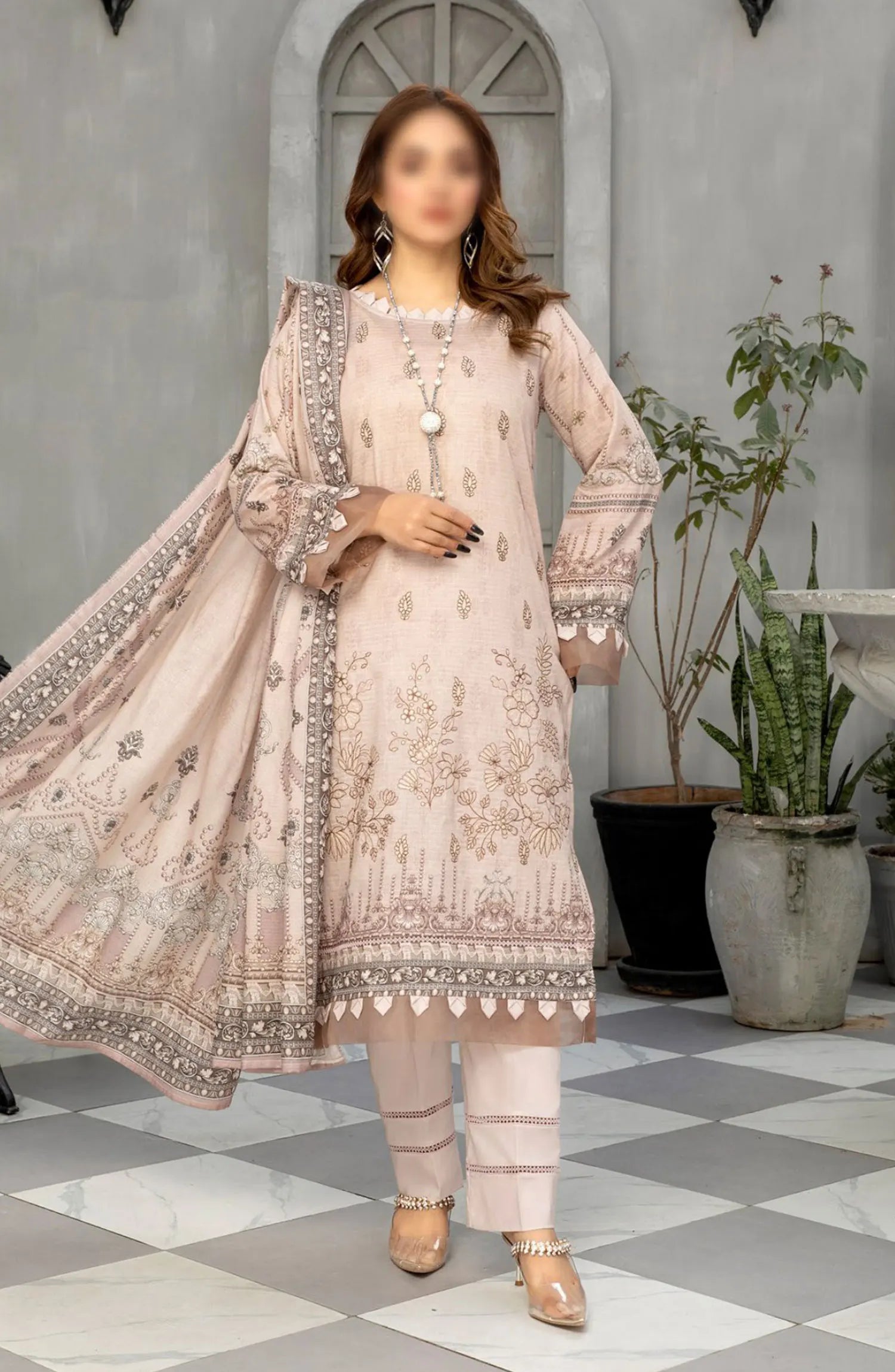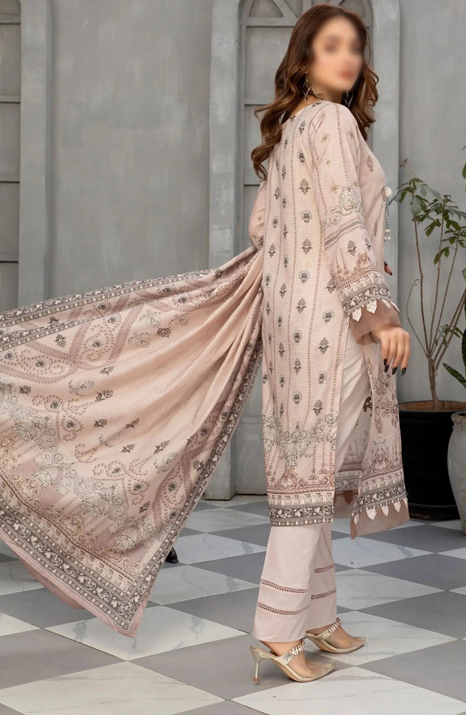 HZ Textile Digital Printed Linen Slub Unstitched 3 Piece Suit - LSD-303 - HZ25LNSL - Pink - Winter Collection