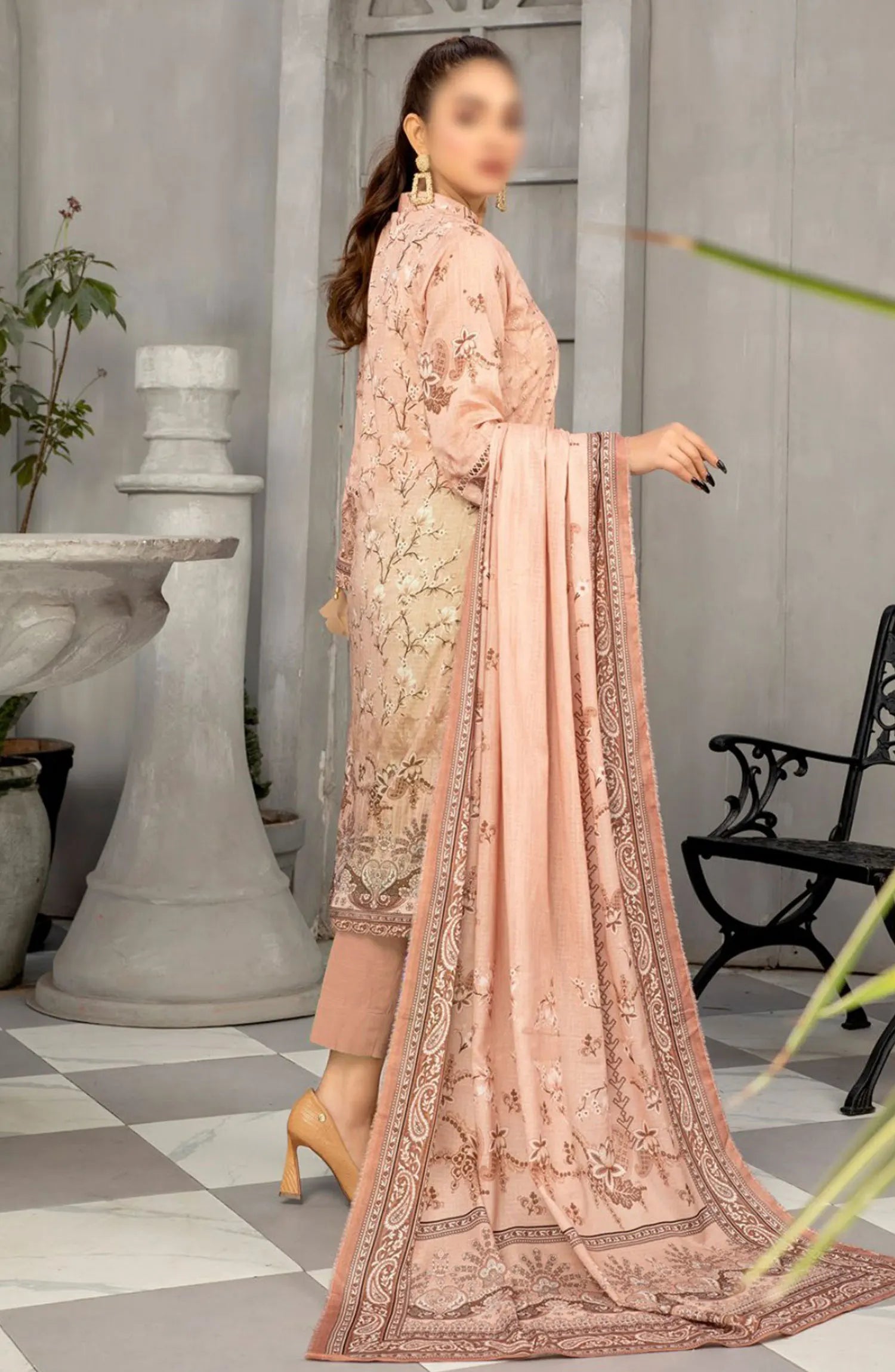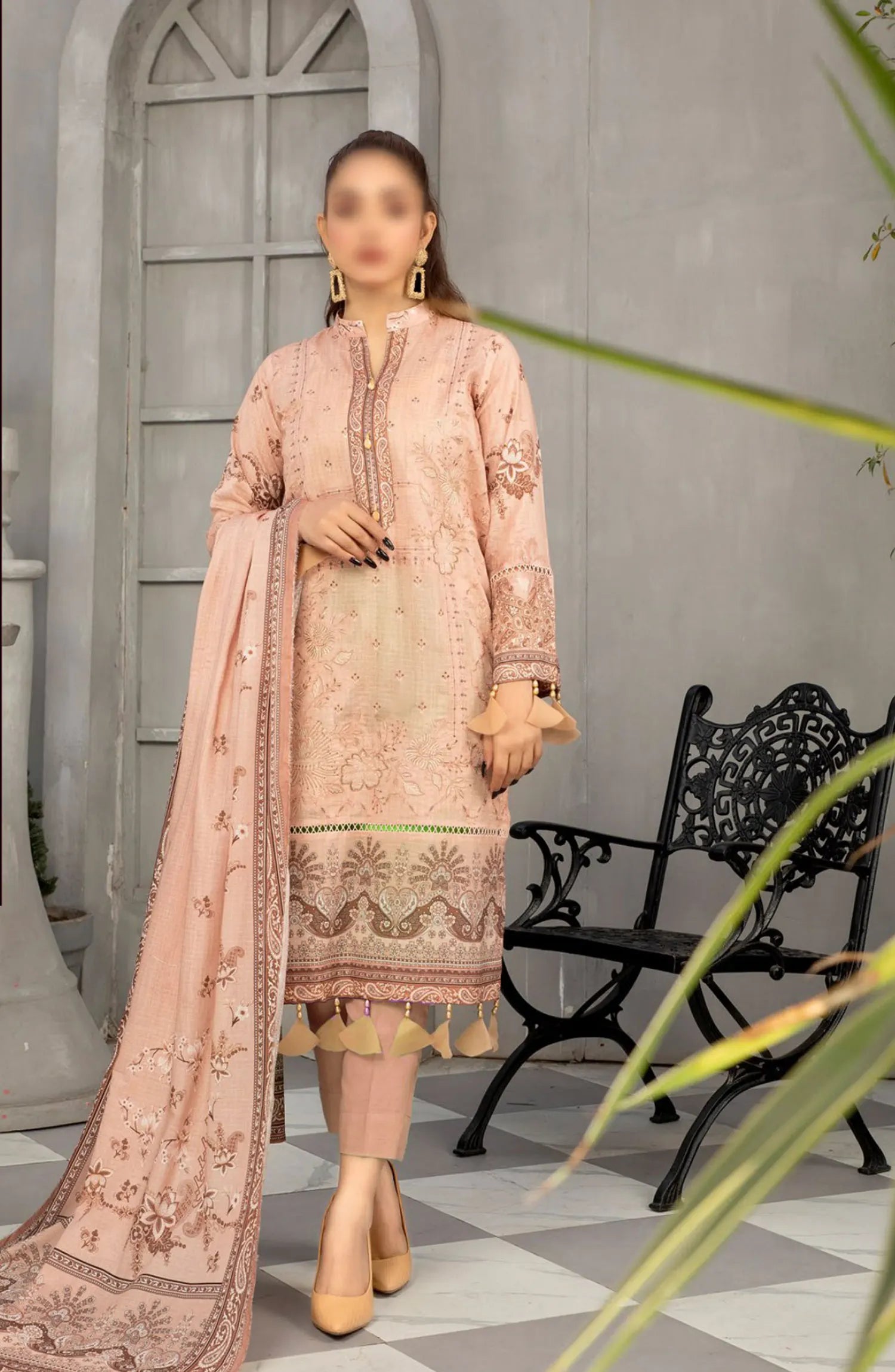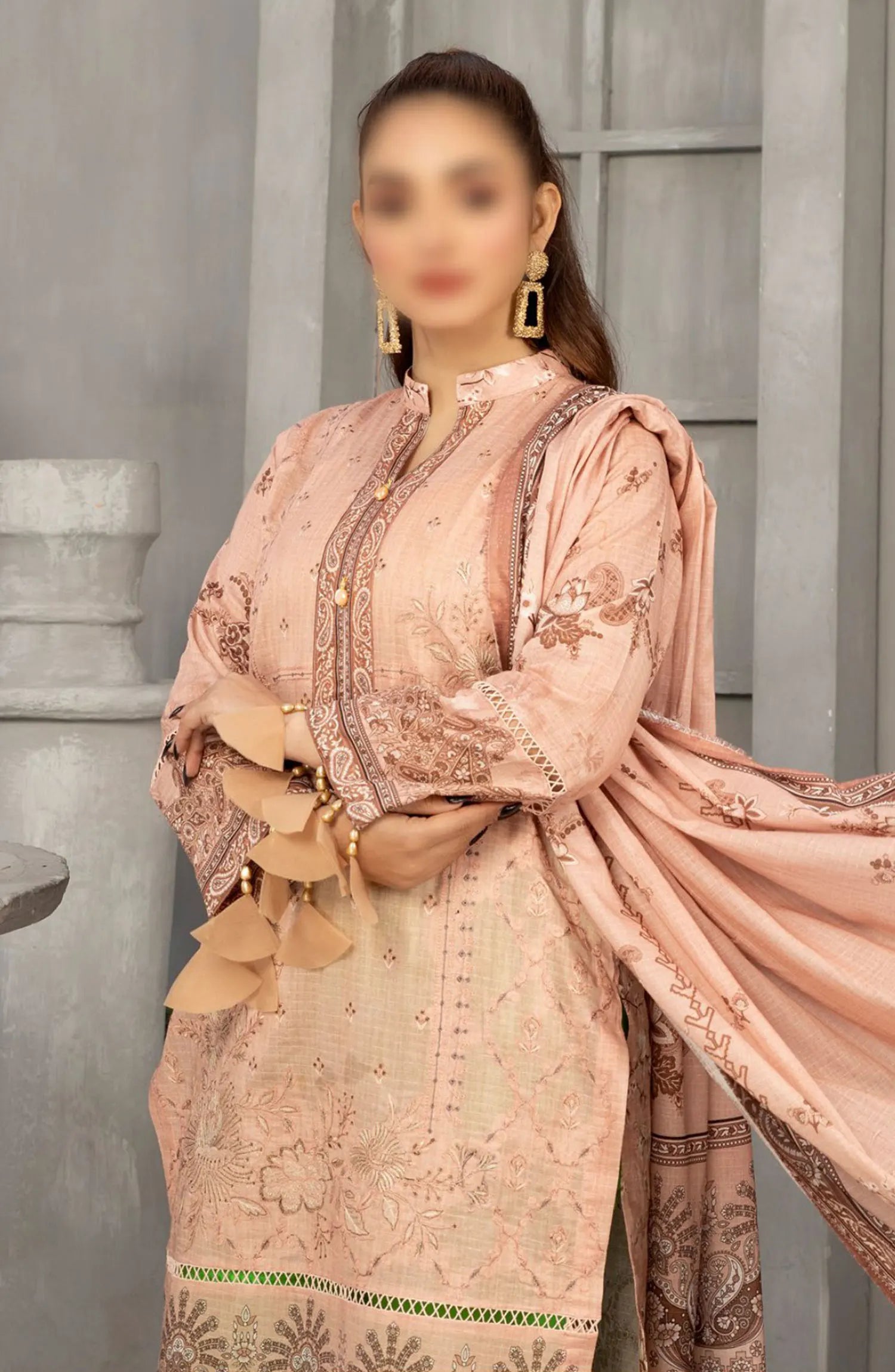 HZ Textile Digital Printed Linen Slub Unstitched 3 Piece Suit - LSD-303 - HZ25LNSL - Pink - Winter Collection