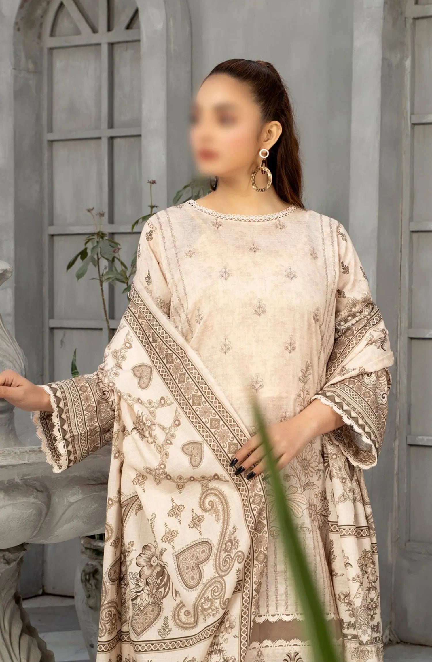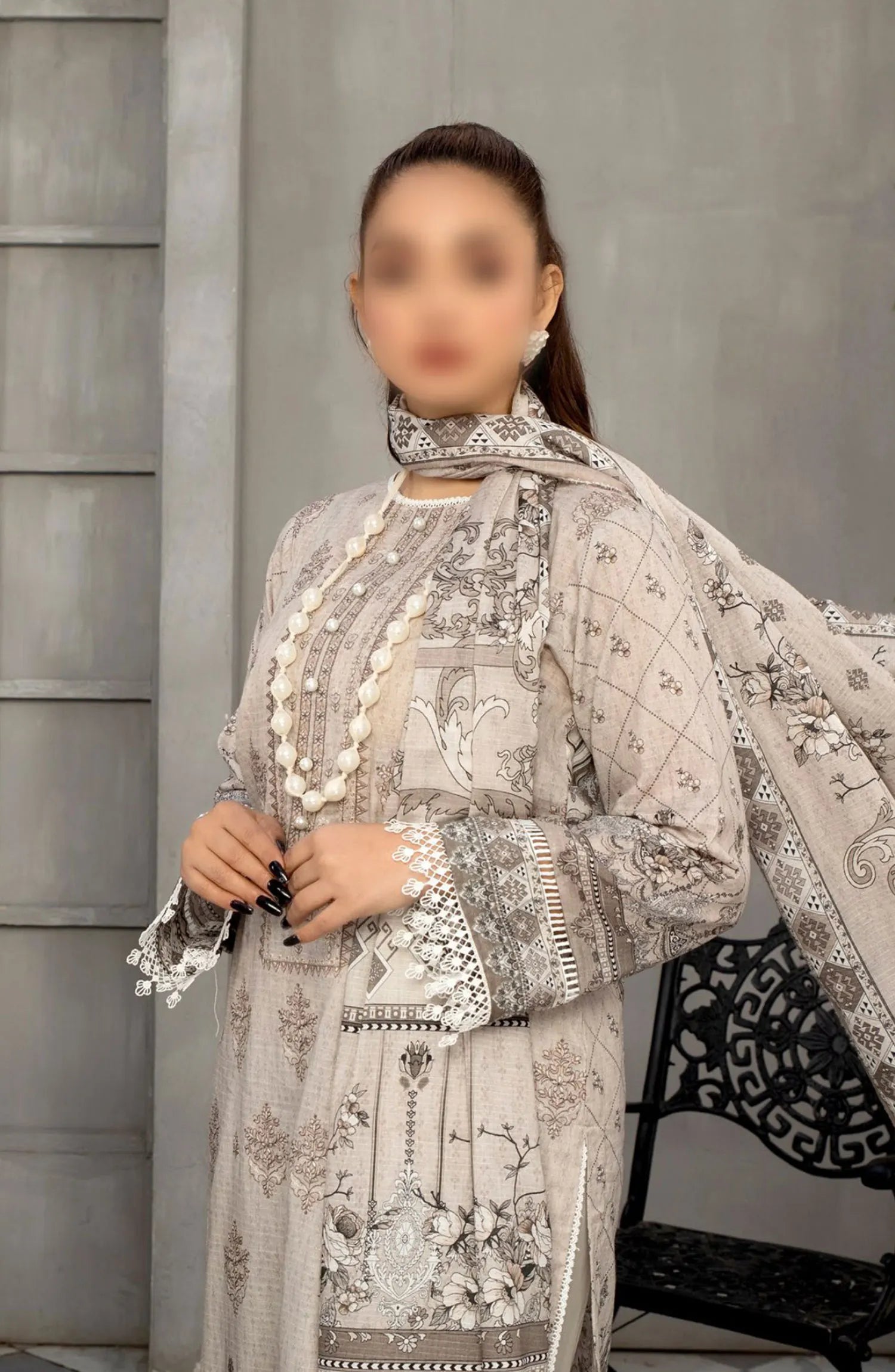HZ Textile Digital Printed Linen Slub Unstitched 3 Piece Suit - LSD-304 - HZ25LNSL - White - Winter Collection