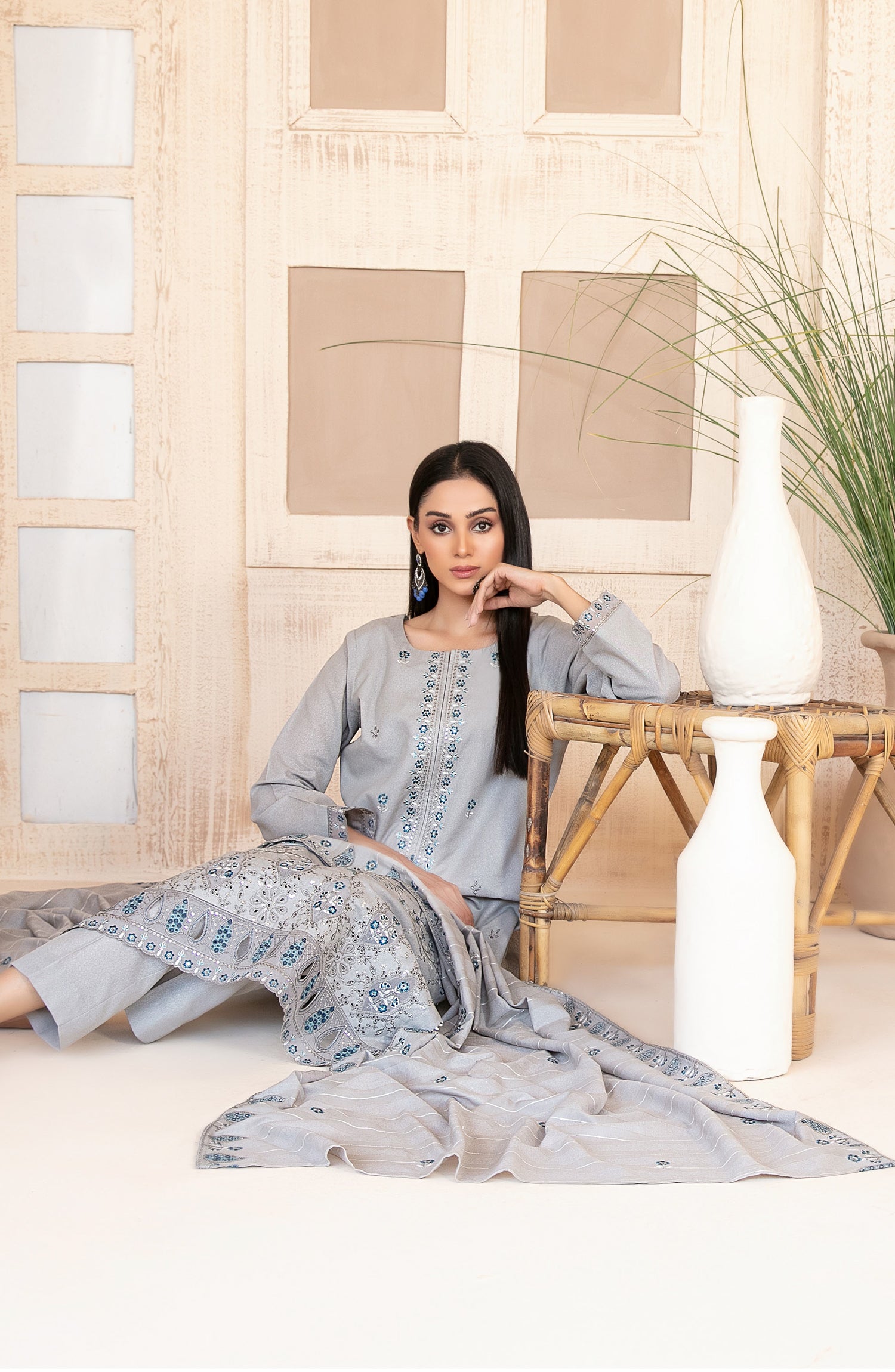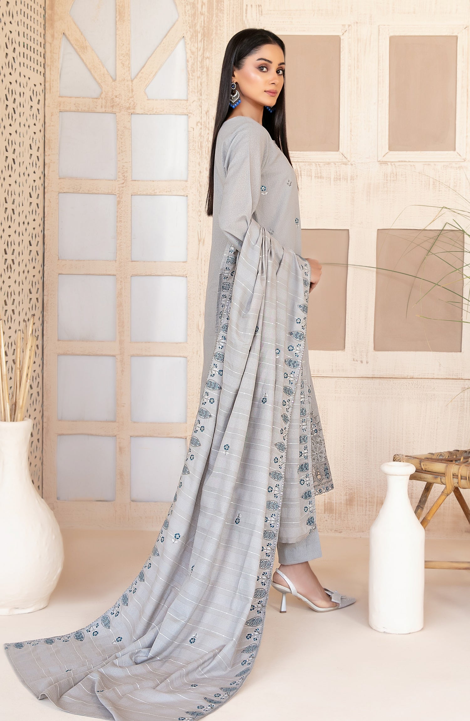 Fancy Embroidered Karandi Unstitched 3 Piece Suit