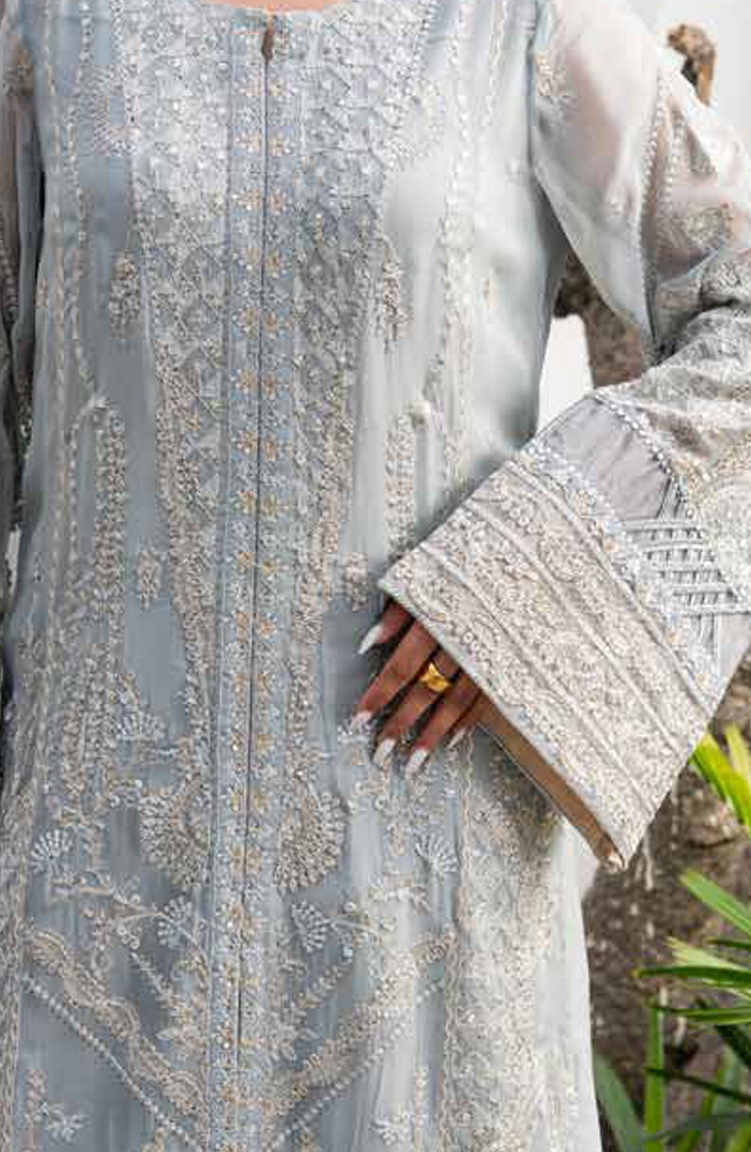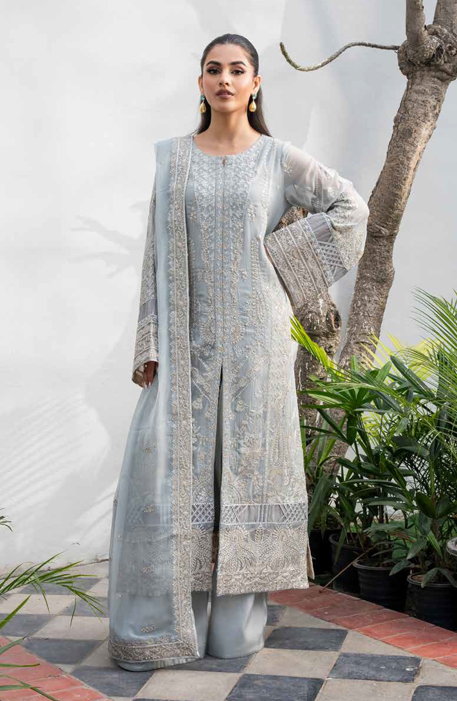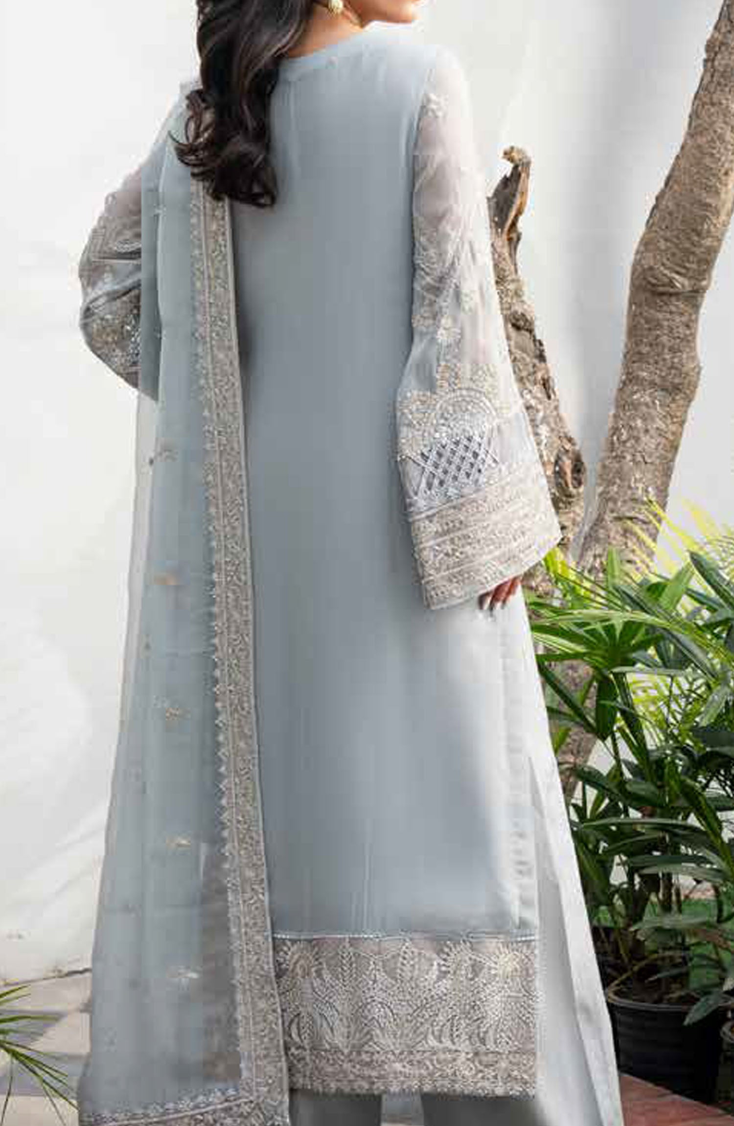 Tarz by Freesia Embroidered Luxury Chiffon Unstitched 3 Piece Suit - JANAN - MNM25TRF - FW-40047 - Grey - Festive Collection