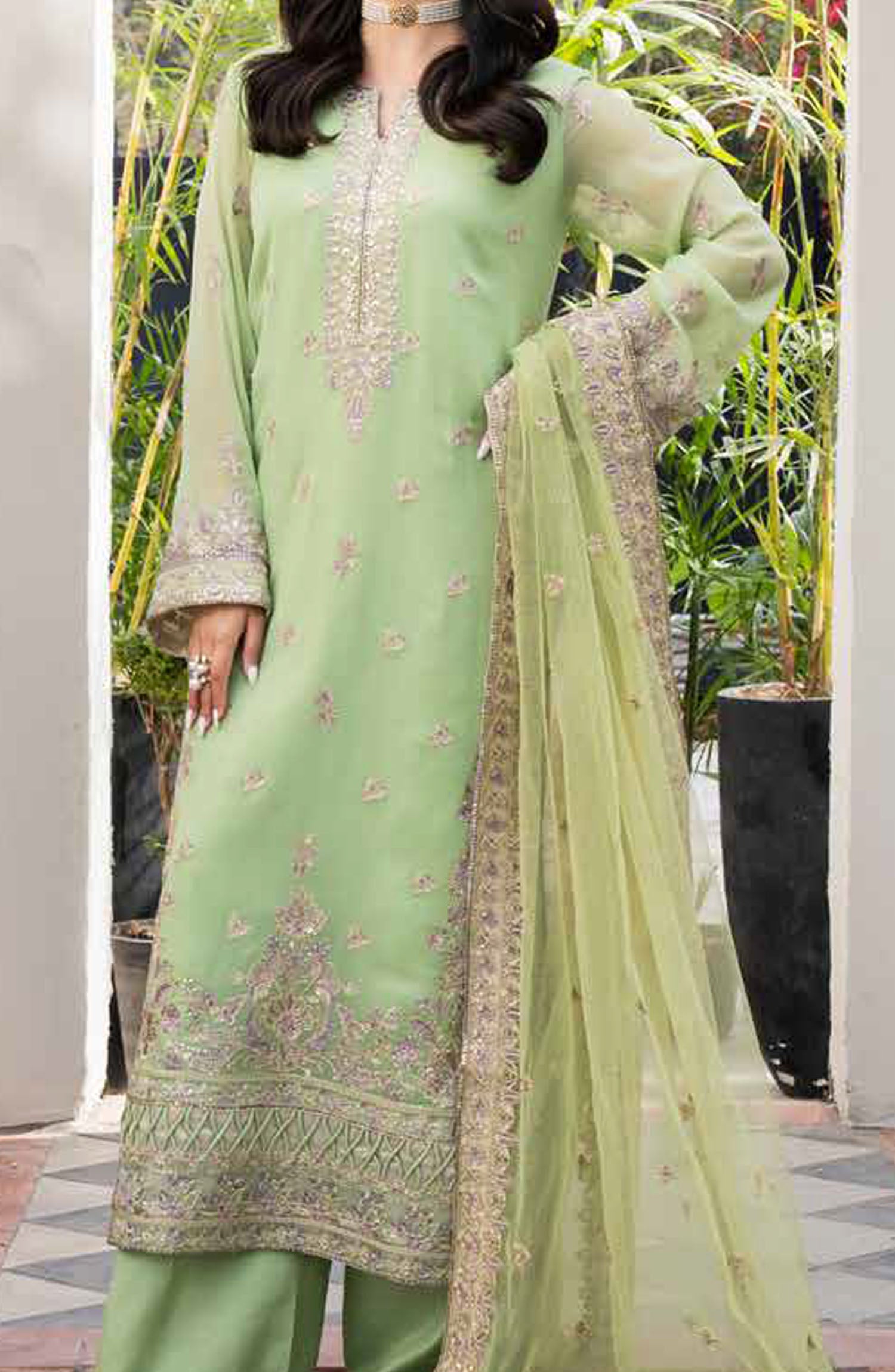 Home Tarz by Freesia Embroidered Luxury Chiffon Unstitched 3 Piece Suit - MANELI - MNM25TRF - FW-40043 - Green - Festive Collection