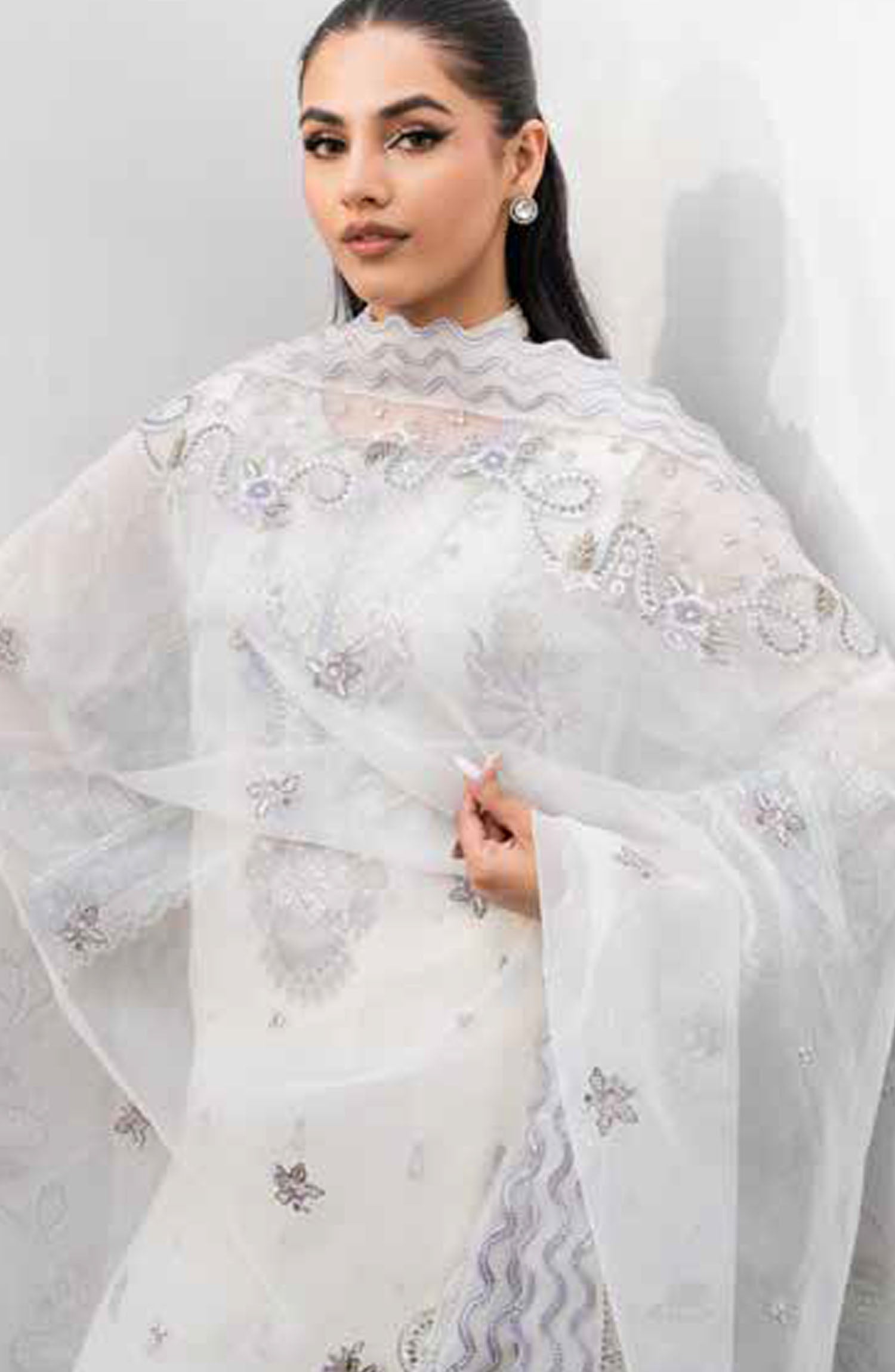 Home Tarz by Freesia Embroidered Luxury Chiffon Unstitched 3 Piece Suit - ROZHAN - MNM25TRF - FW-40045 - White - Festive Collection