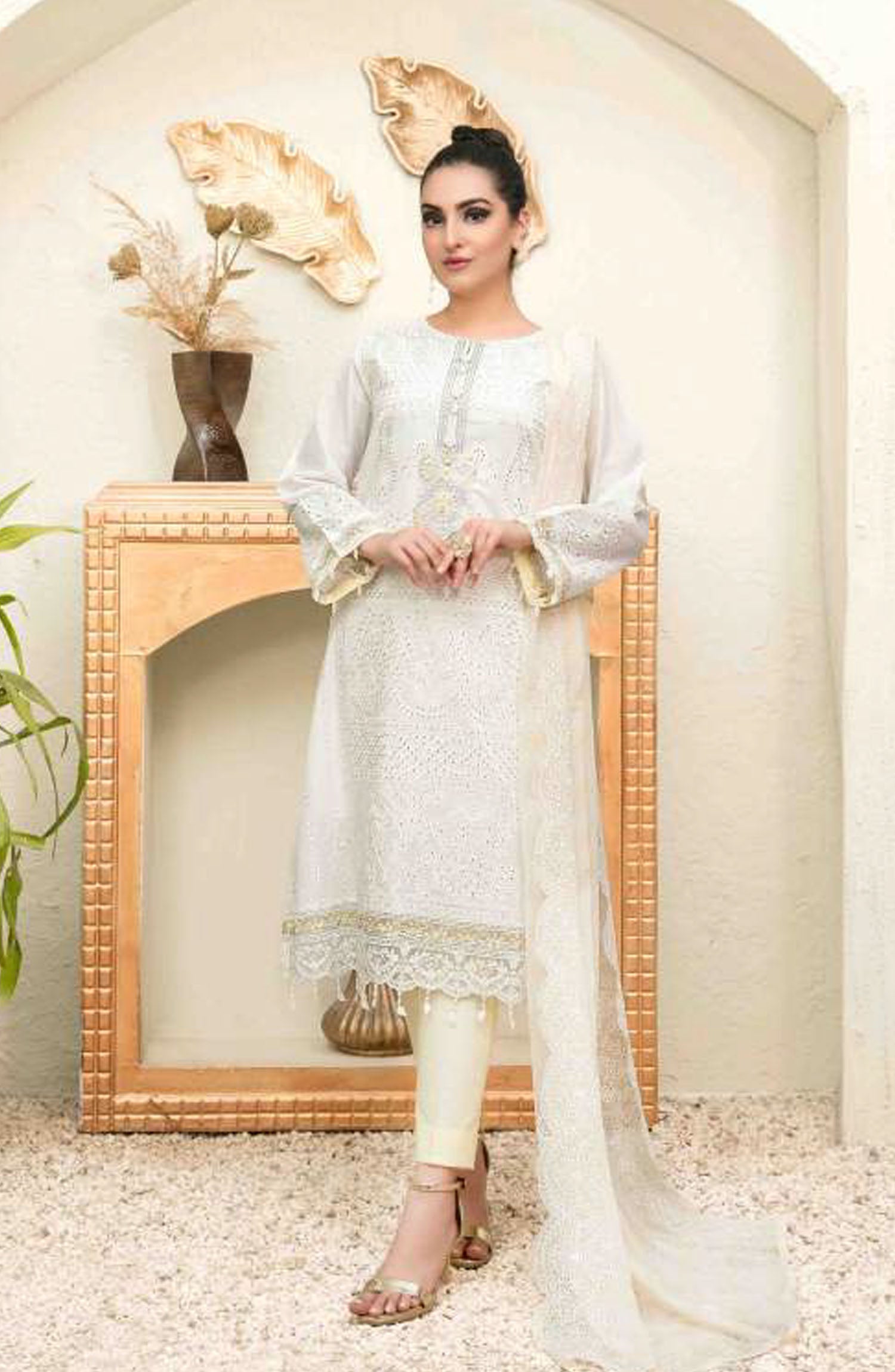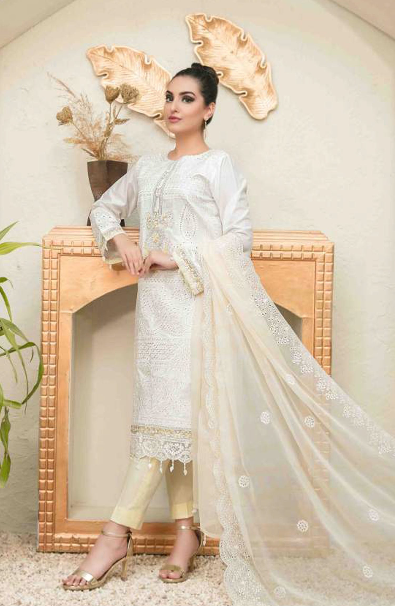 Embroidered White Cotton Unstitched 3 Piece Suit