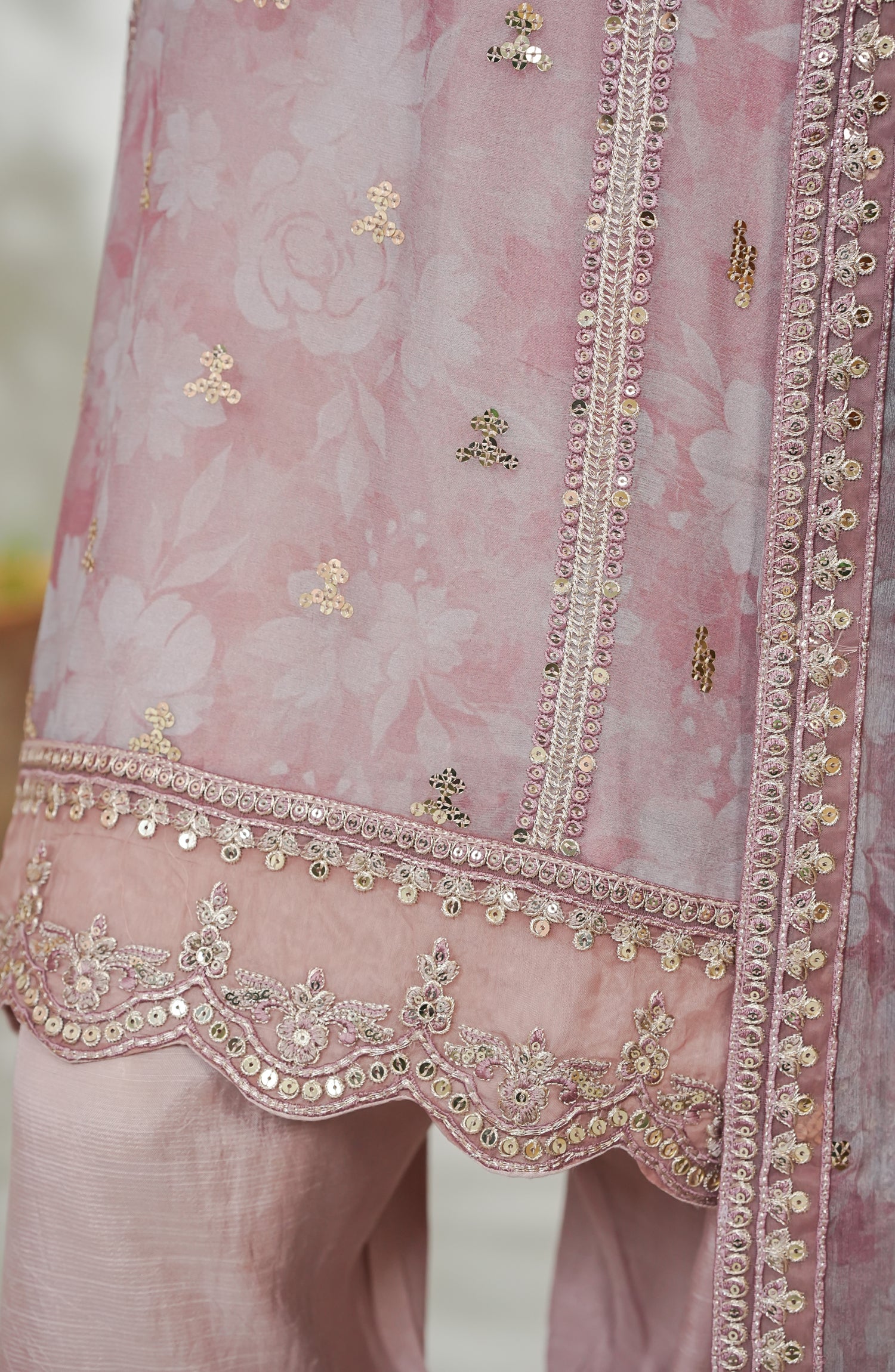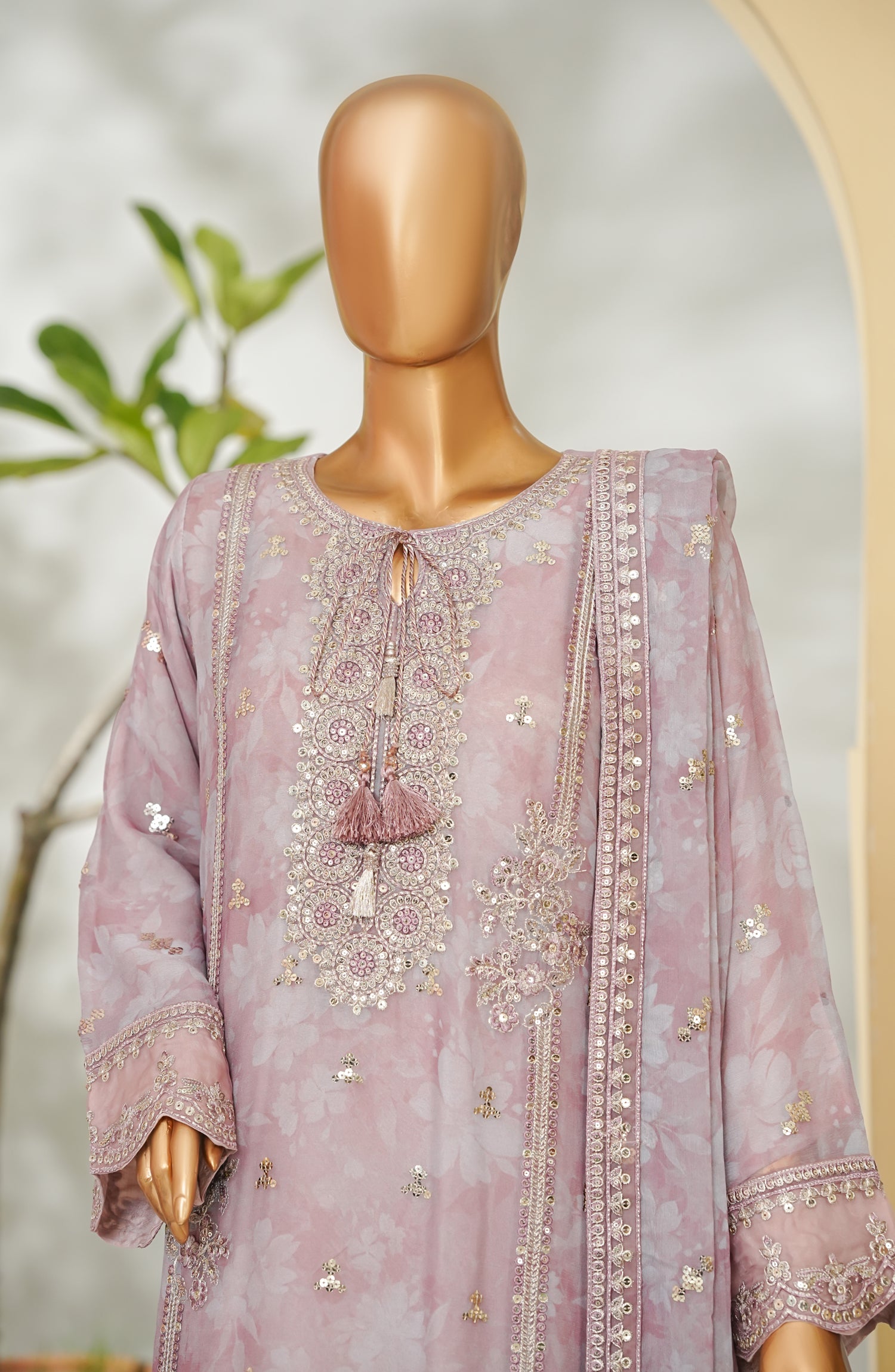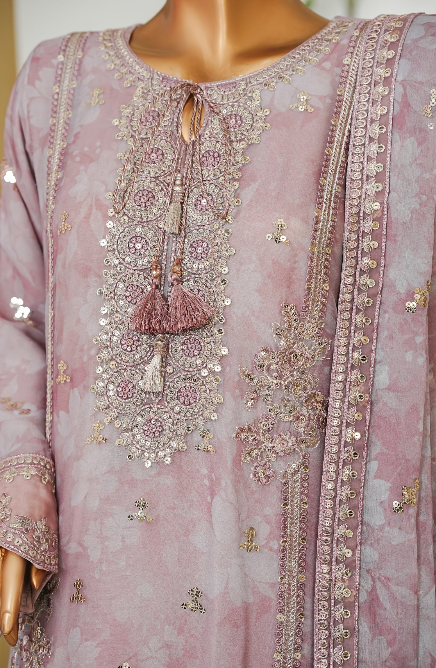 Dupatta: Printed Chiffon & Embroidered four sides Applique,