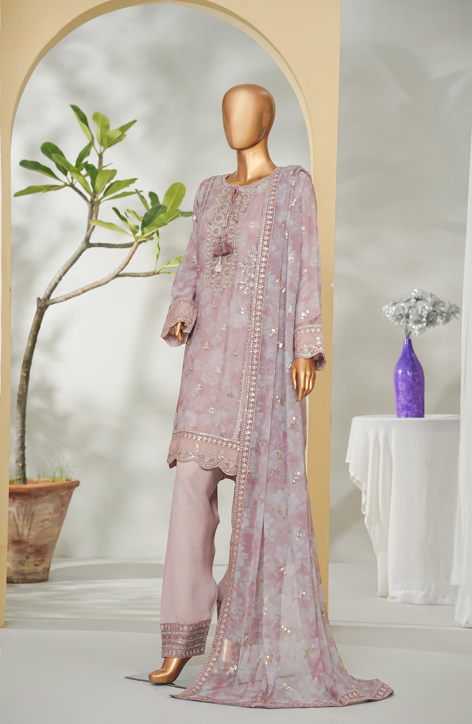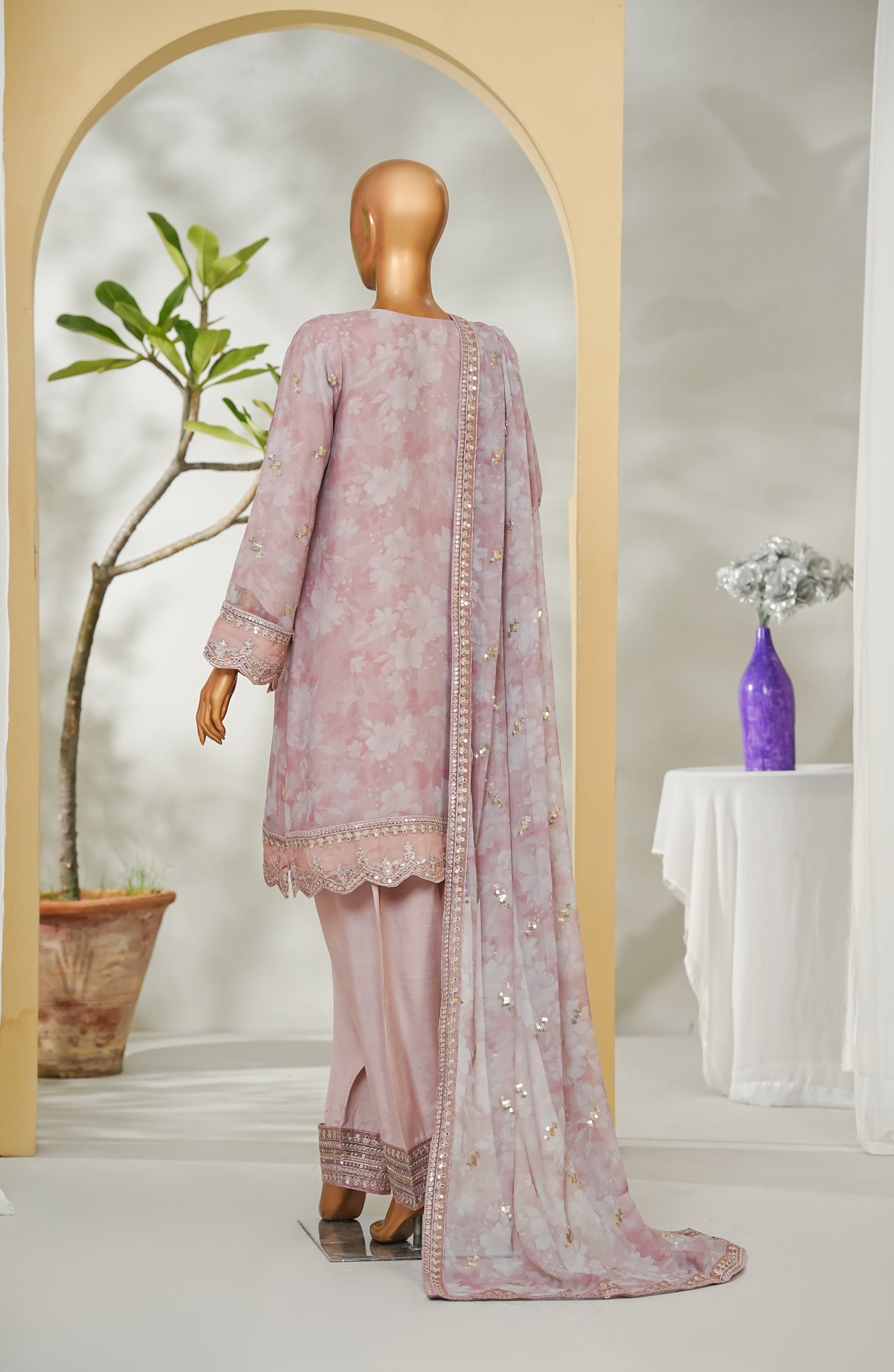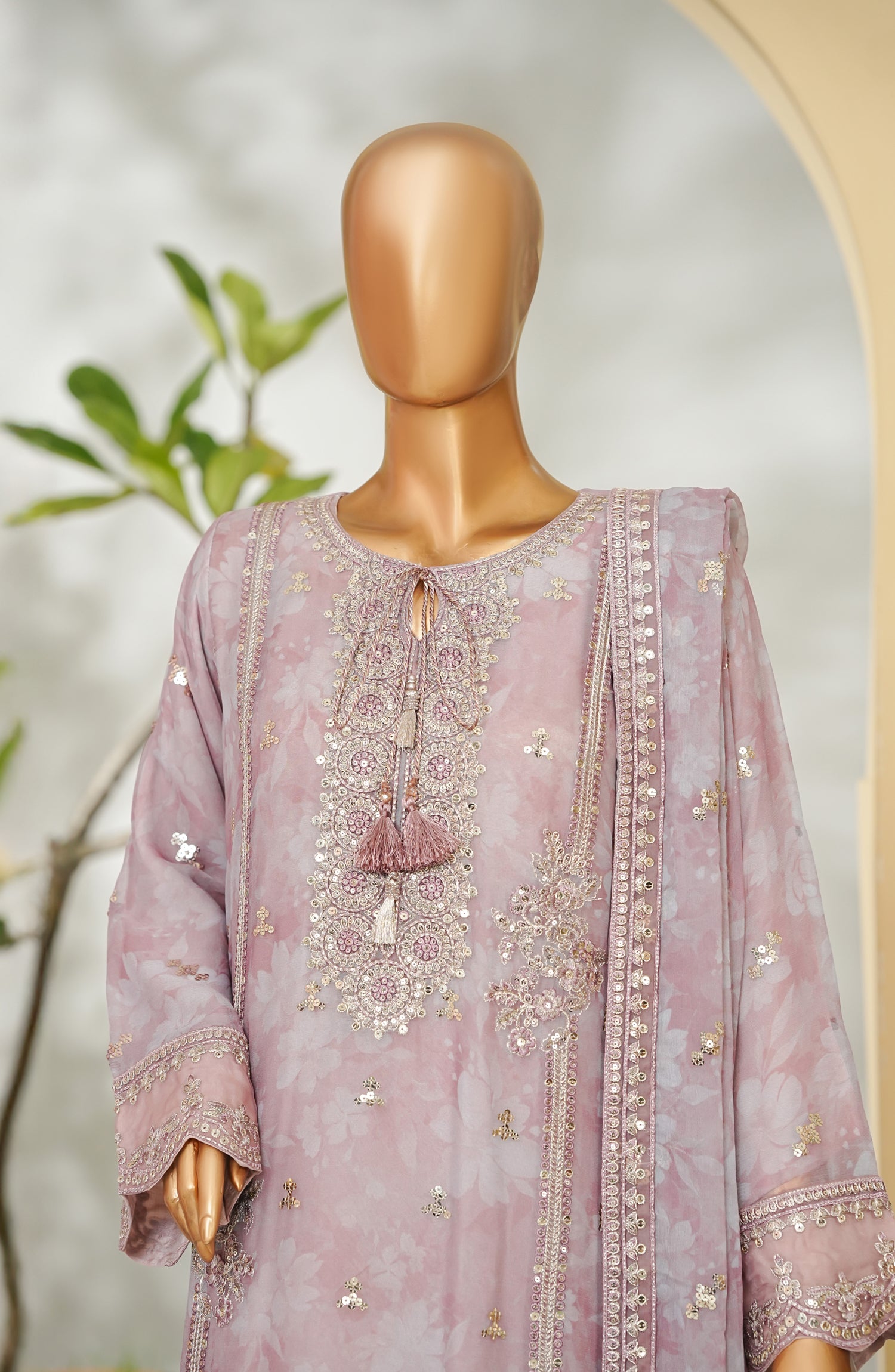 Dupatta: Printed Chiffon & Embroidered four sides Applique,