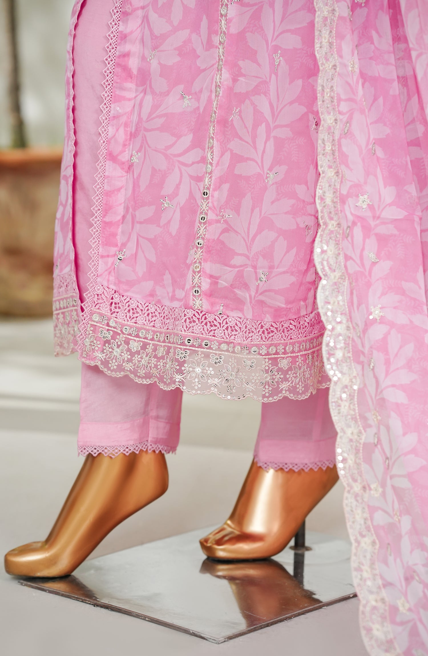 Dupatta: Printed Chiffon & Embroidered four sides Applique,