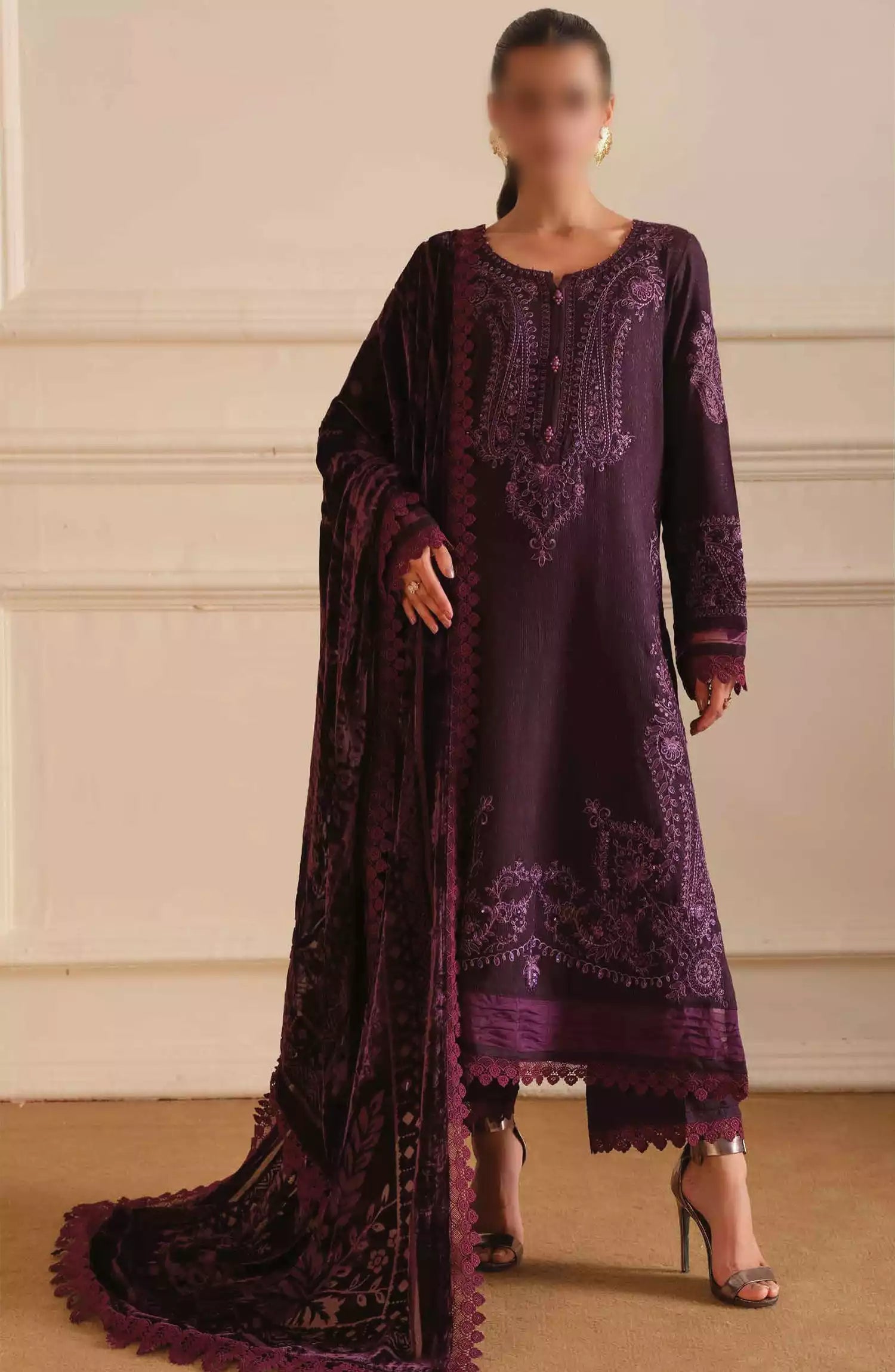 3 Piece | All Categories Women | Flat 15% | Leather Peach | Leather Peach Collection | Riaz Arts | Shop by Color Purple | Shop by Season Winter Wear | Shop by Style Unstitched | Tehzeeb Embroidered Leather Peach Collection By Riaz Arts | Unstitched | Unstitched Collections | Unstitched Daily Wear | Unstitched Winter wear | Winter Collection | Women