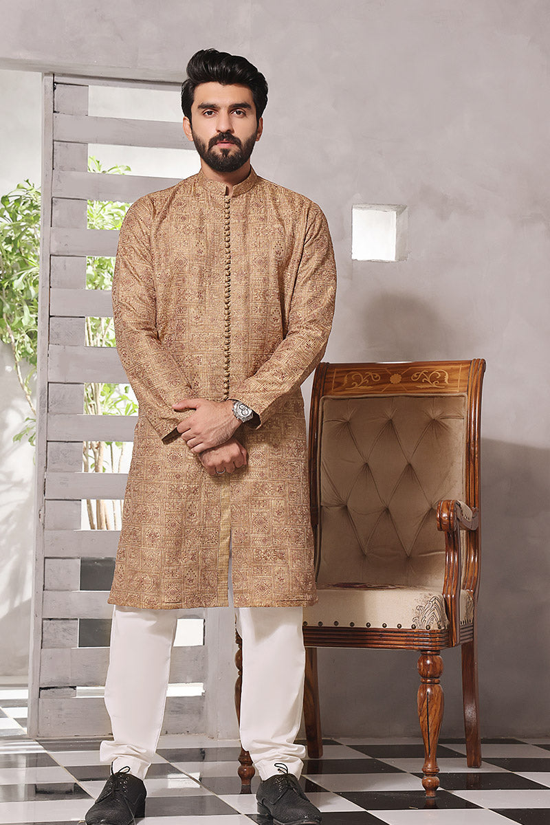 Embroidered Jamawar | Men Kurta Pyjama | Men Stitched Fabric | Men TGM Fancy Kurta Pyjama Collection 2023 | Men Wedding Wear | New Arrival | Pret Festive Wear | Shop by Color Golden | Shop by Season All Seasons | Stitched | TGM Mens | The Great Master | Winter Collection