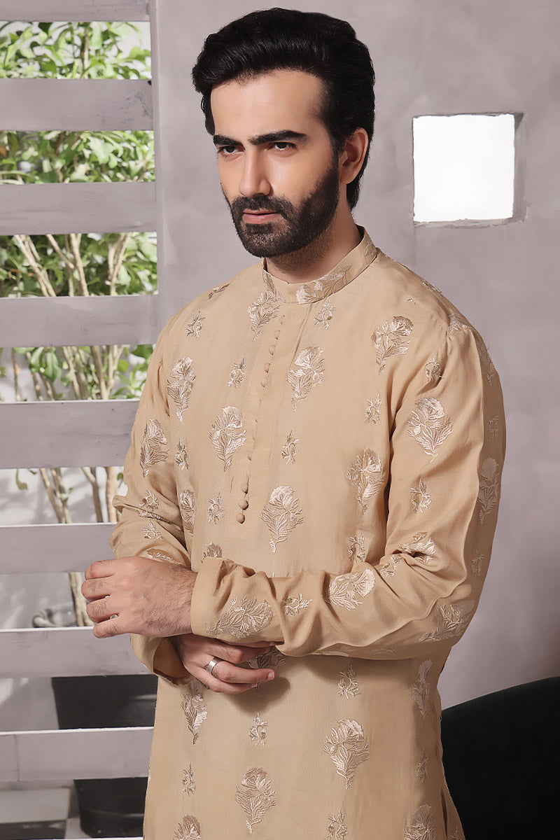 Men's Fancy Kurta Pyjama on Silk Fabric with Chikan Embroidery