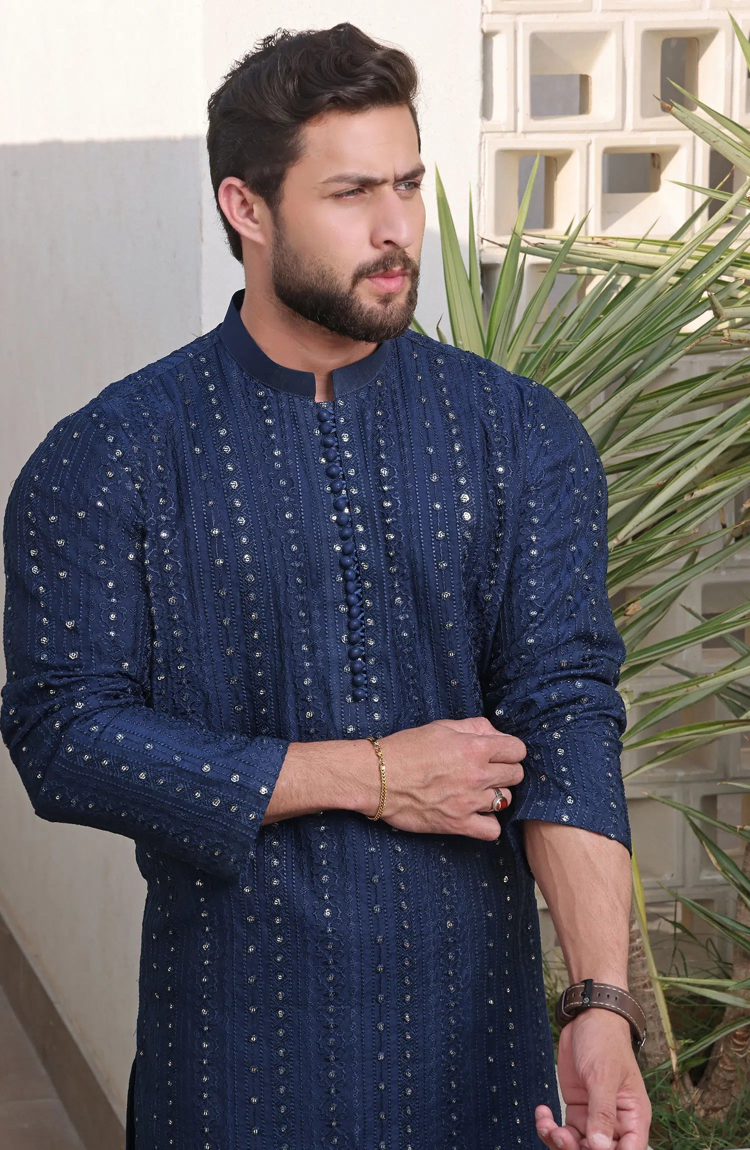 Men's Formal Embroidered Raw Silk Kurta Pyjama