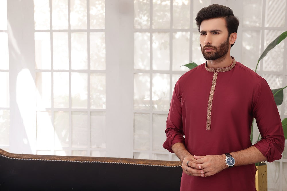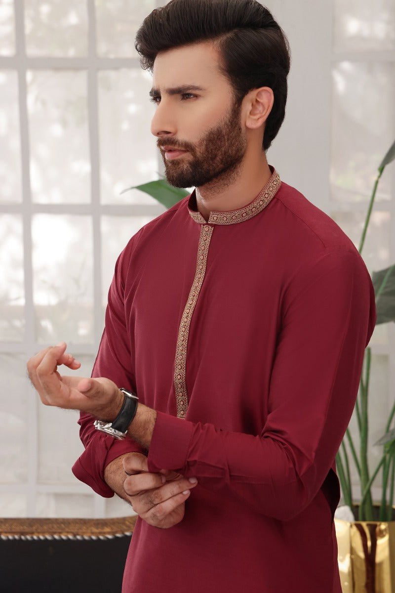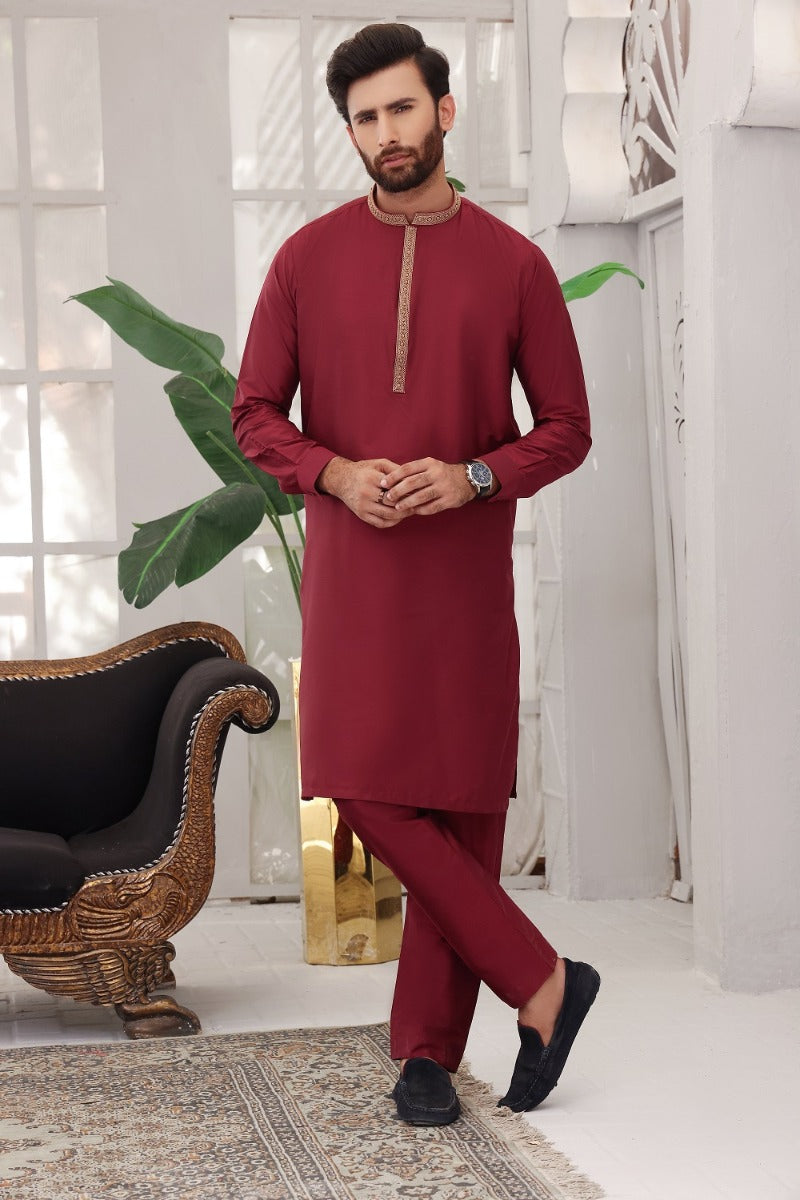 Men's Formal Kurta Pyjama on Cotton Fabric with Computer Embroidery