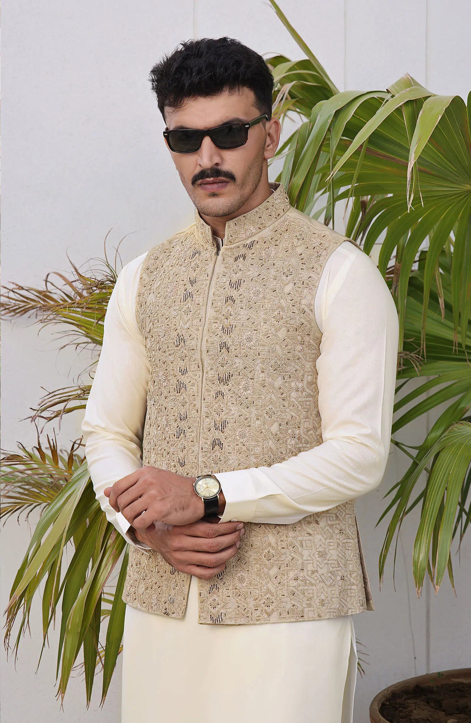 The standard style comes as a 3 Pcs Mens Shalwar Kameez with Coat .