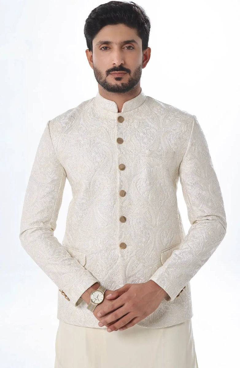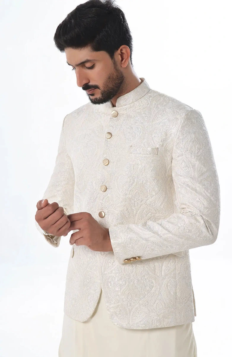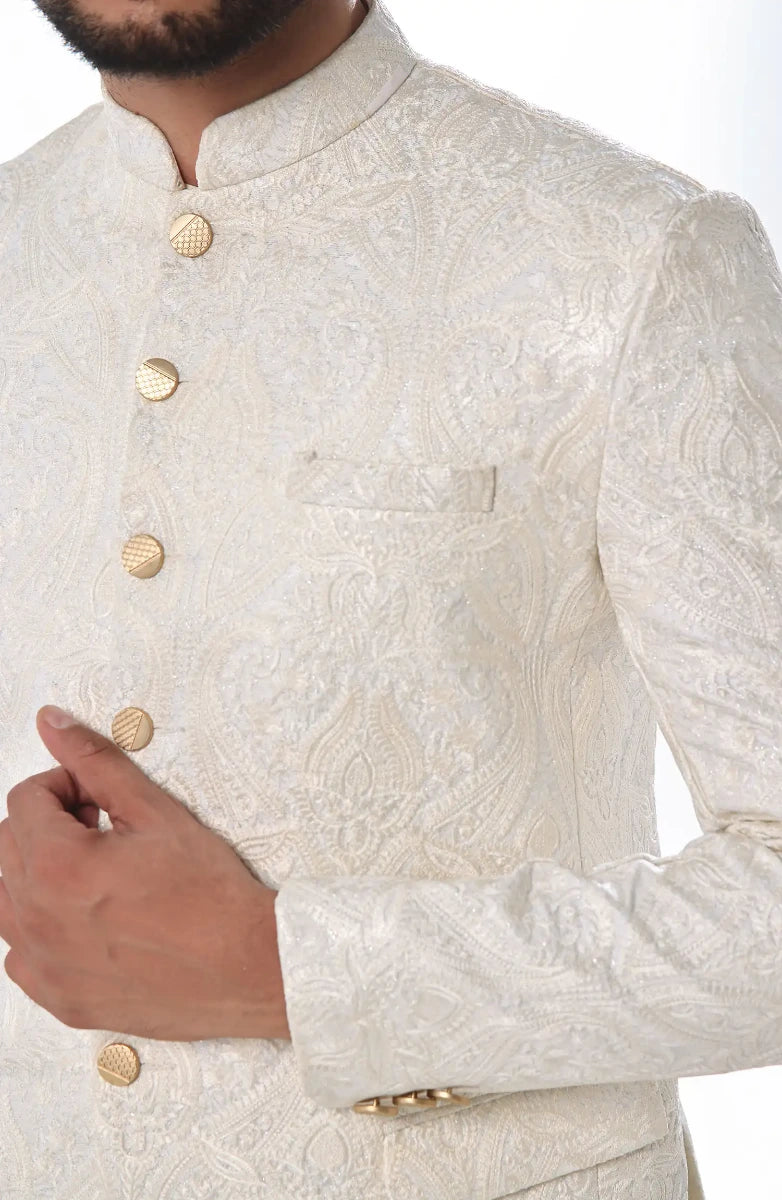 Men's Formal Jamawar Prince Coat With Computer Embroidery