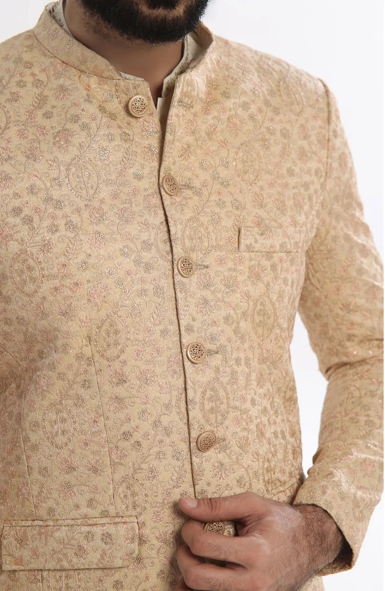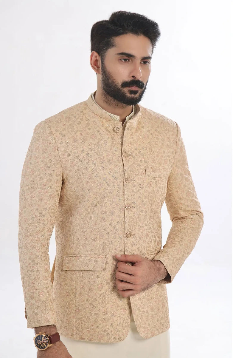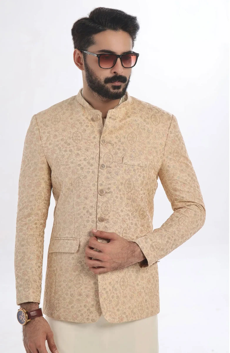Men's Formal Jamawar Prince Coat With Computer Embroidery