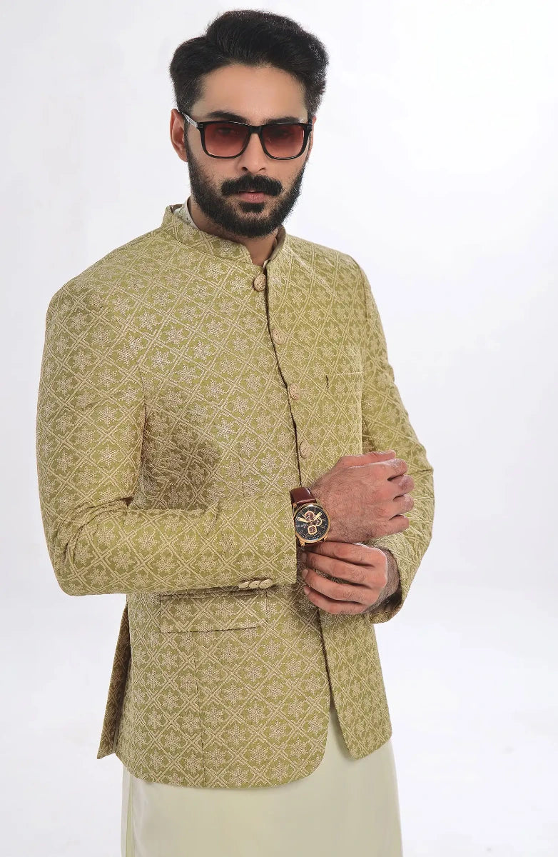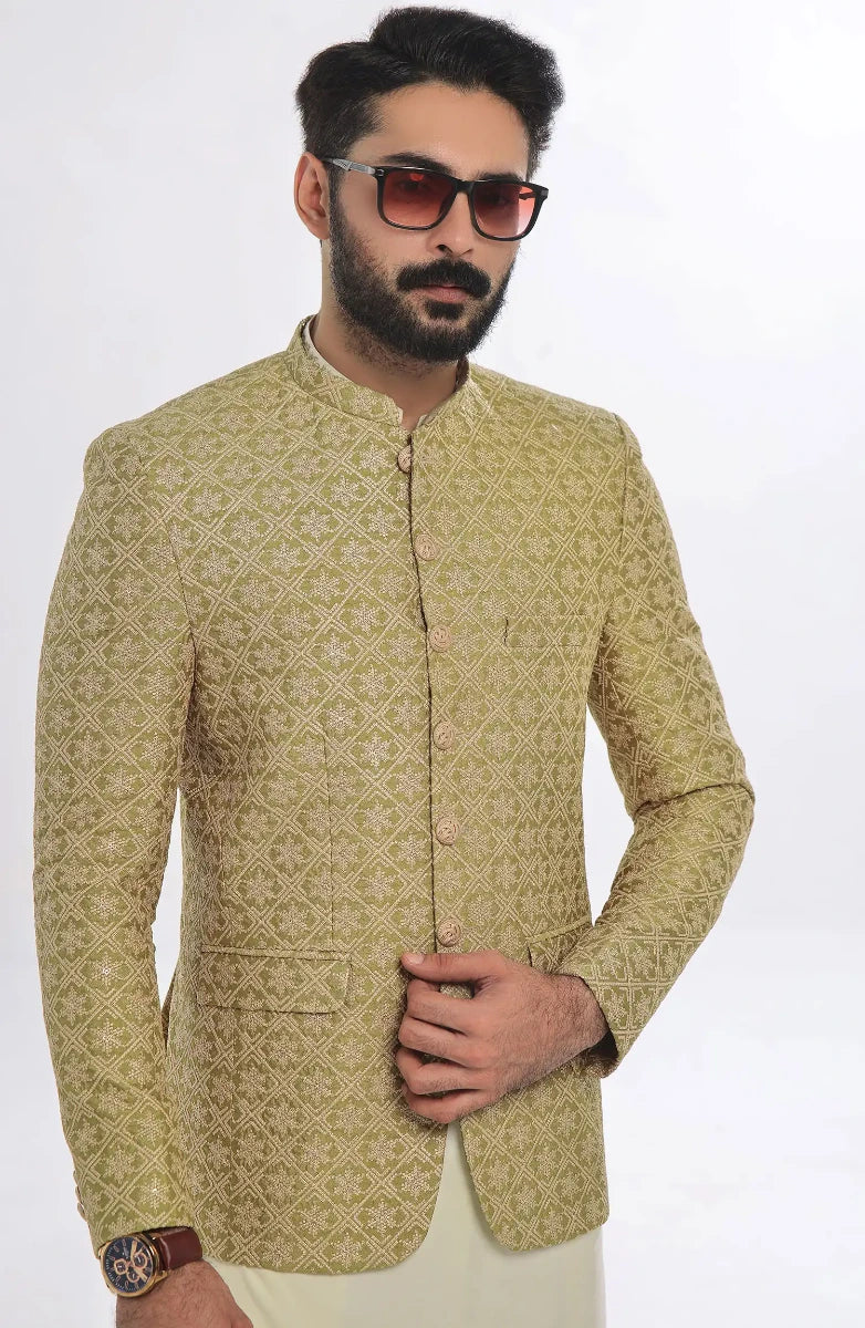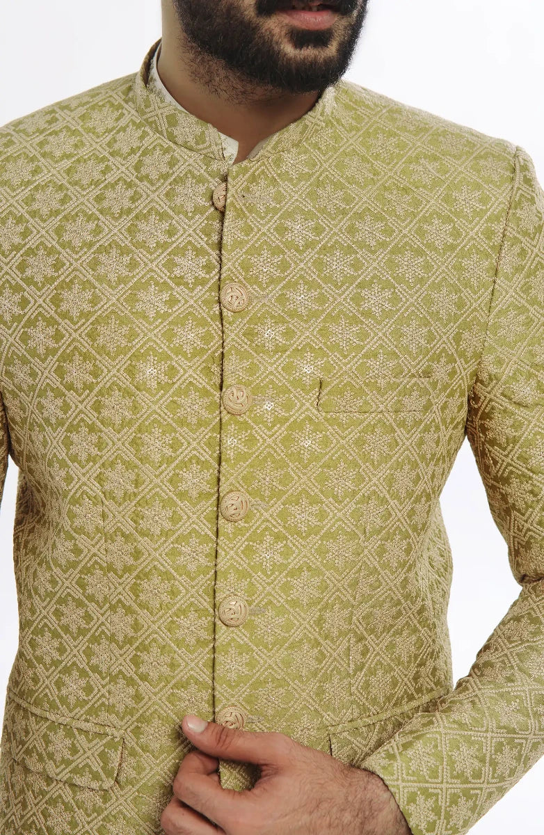 Men's Formal Raw Silk Prince Coat With Computer Embroidery