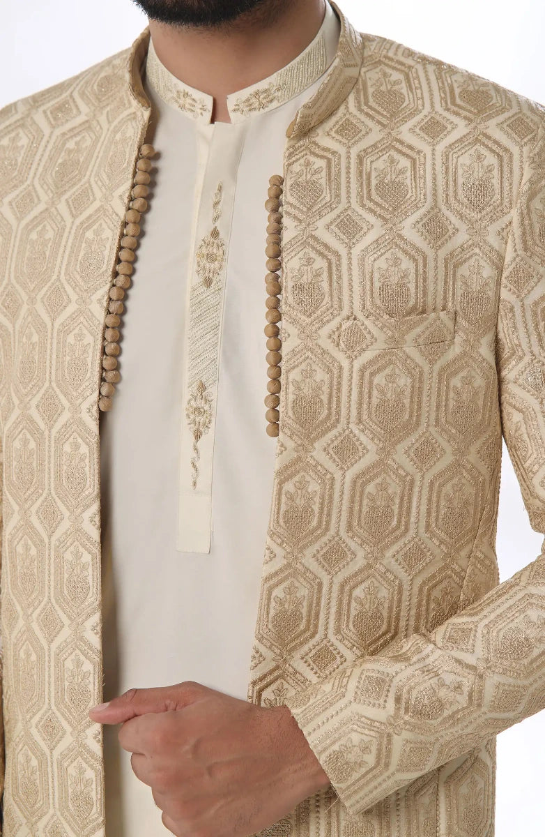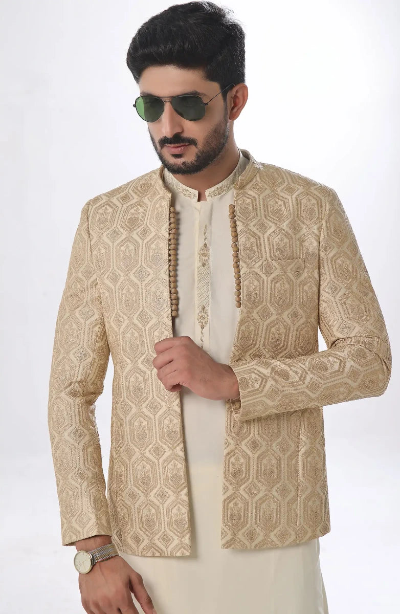 Men's Formal Raw Silk Prince Coat With Computer Embroidery with Sequence