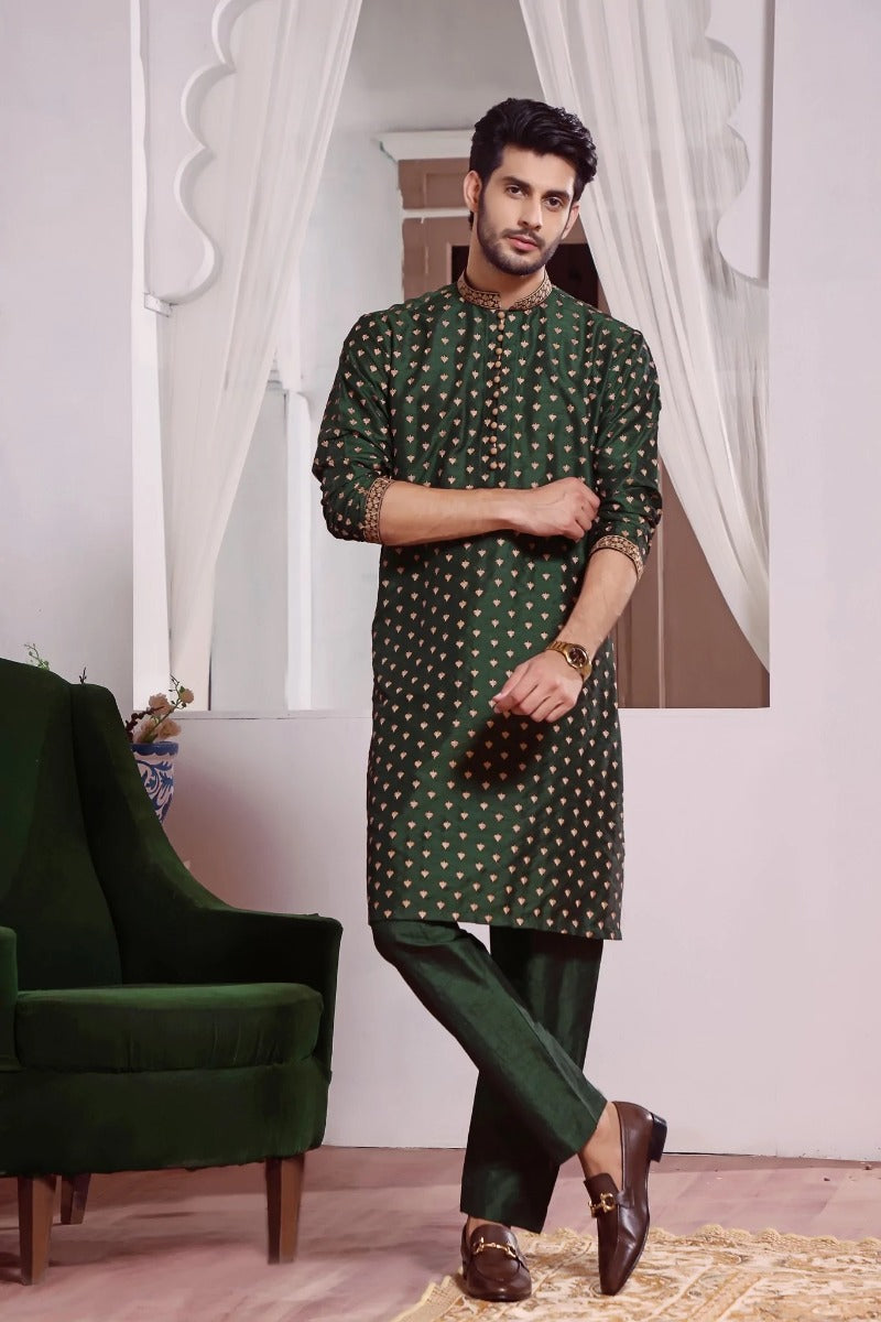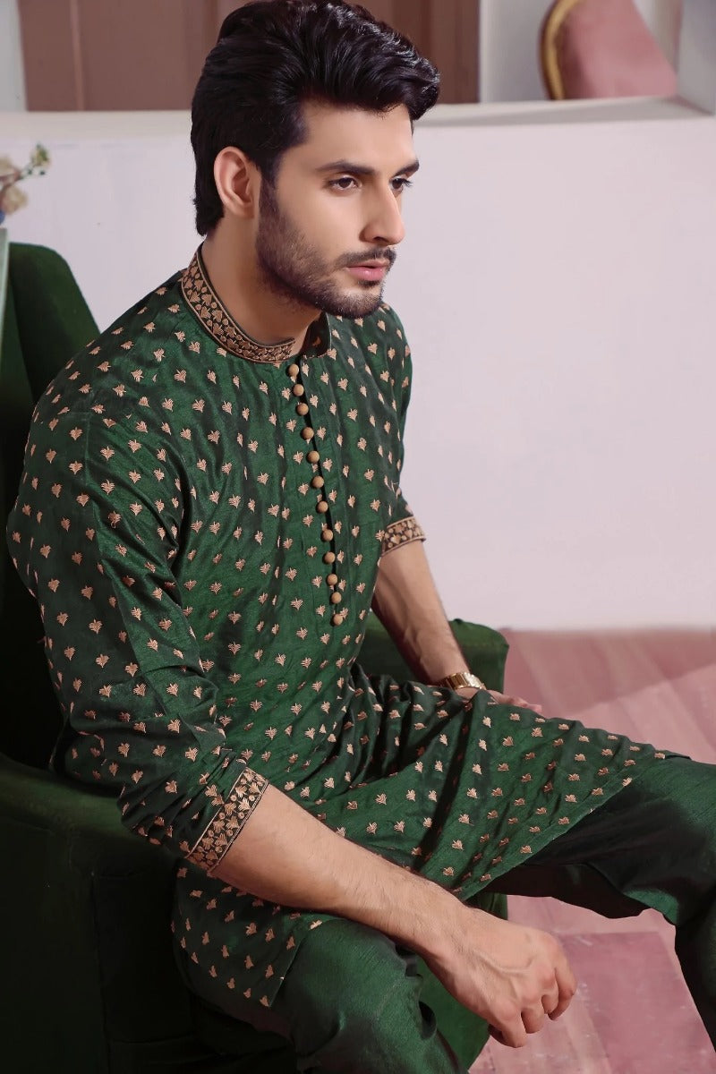 Men's Formal Kurta Pyjama On Raw Silk with Computer Embroidery with Booti work