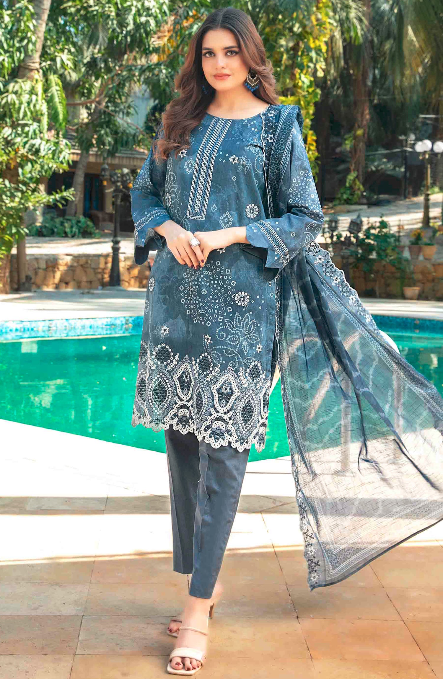 Home Thamina by Tawakkal Fabrics Embroidered Lawn Unstitched 3 Piece Suit - D-1194 - TF25TL - Blue - Summer Collection