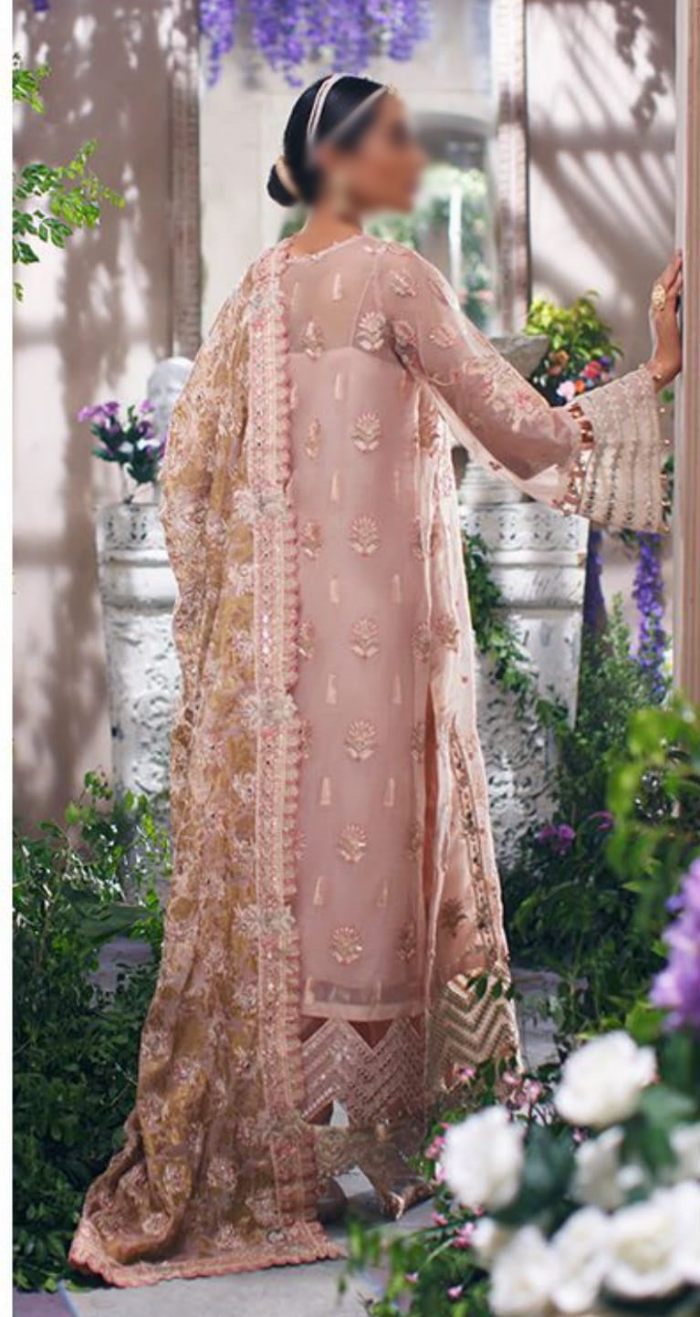 The standard style comes as a long-sleeved kameez with dupatta and trouser/shalwar.
