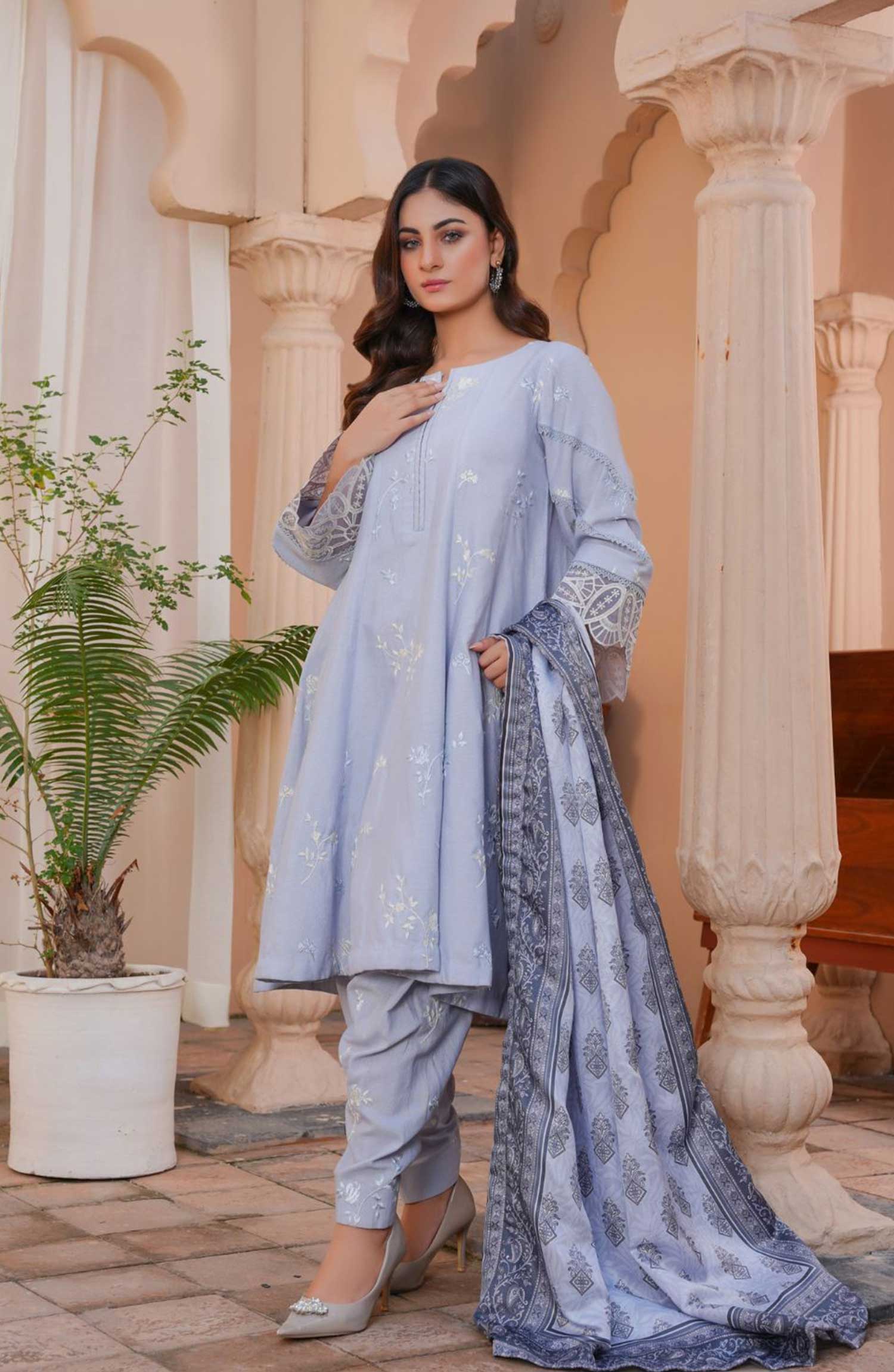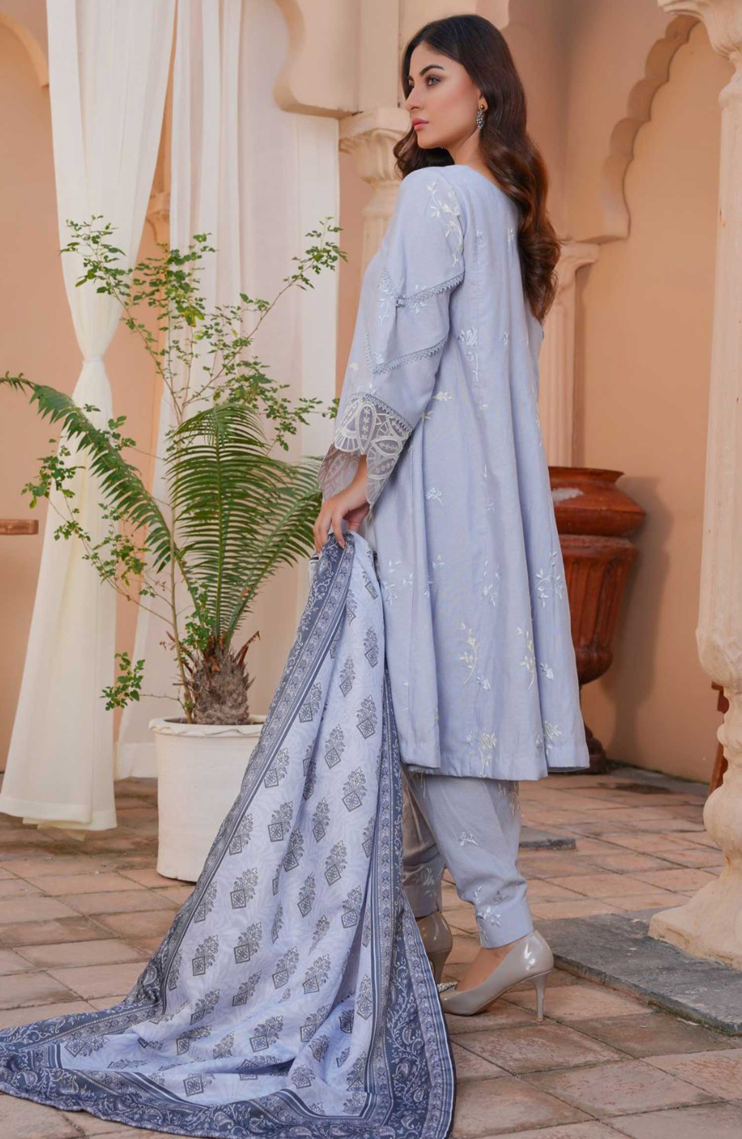 Afrozeh Day Break Embroidered Lawn Unstitched 3 Piece Suit - FWU-0013-3PO-Dawn Fall - AF26DB - Blue - Luxury Summer Collection