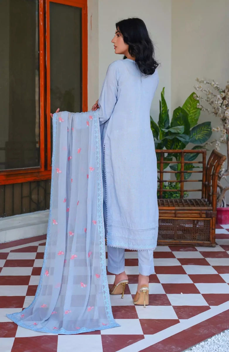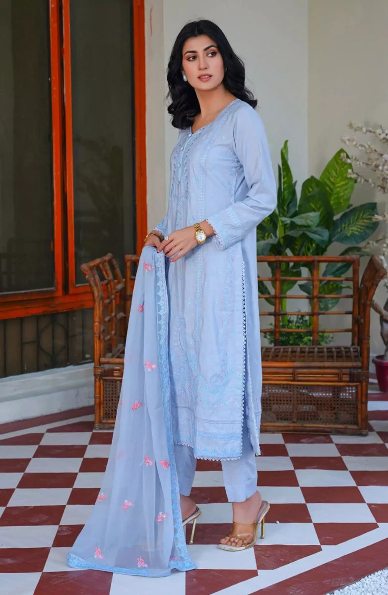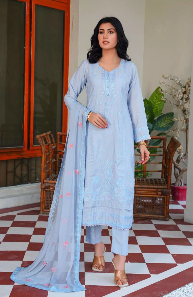 Modest Embroidered Chiffon Stitched 3 Piece Suit - 9825-Blu - MOD25PRF - Blue - Festive Girls Collection