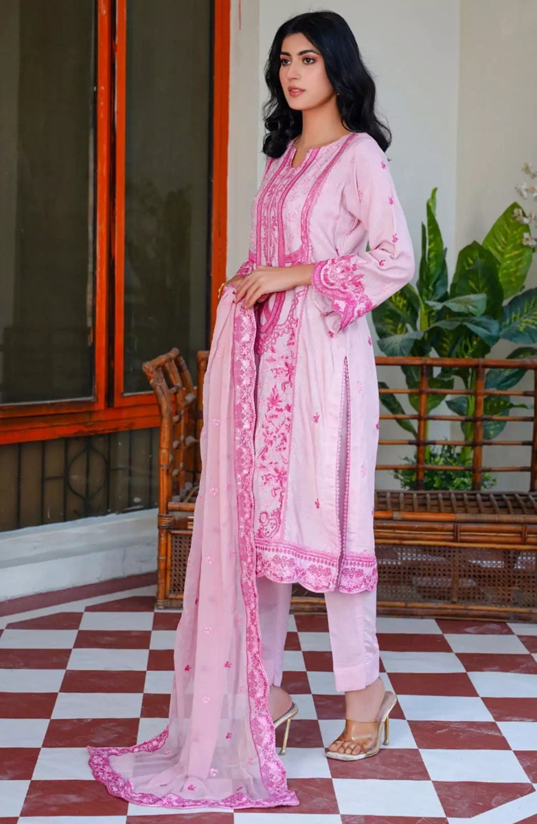 The standard style comes as a long-sleeved kameez with dupatta and trouser/shawlar.