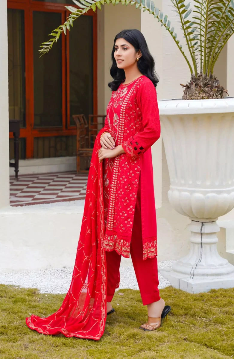 The standard style comes as a long-sleeved kameez with dupatta and trouser/shawlar.