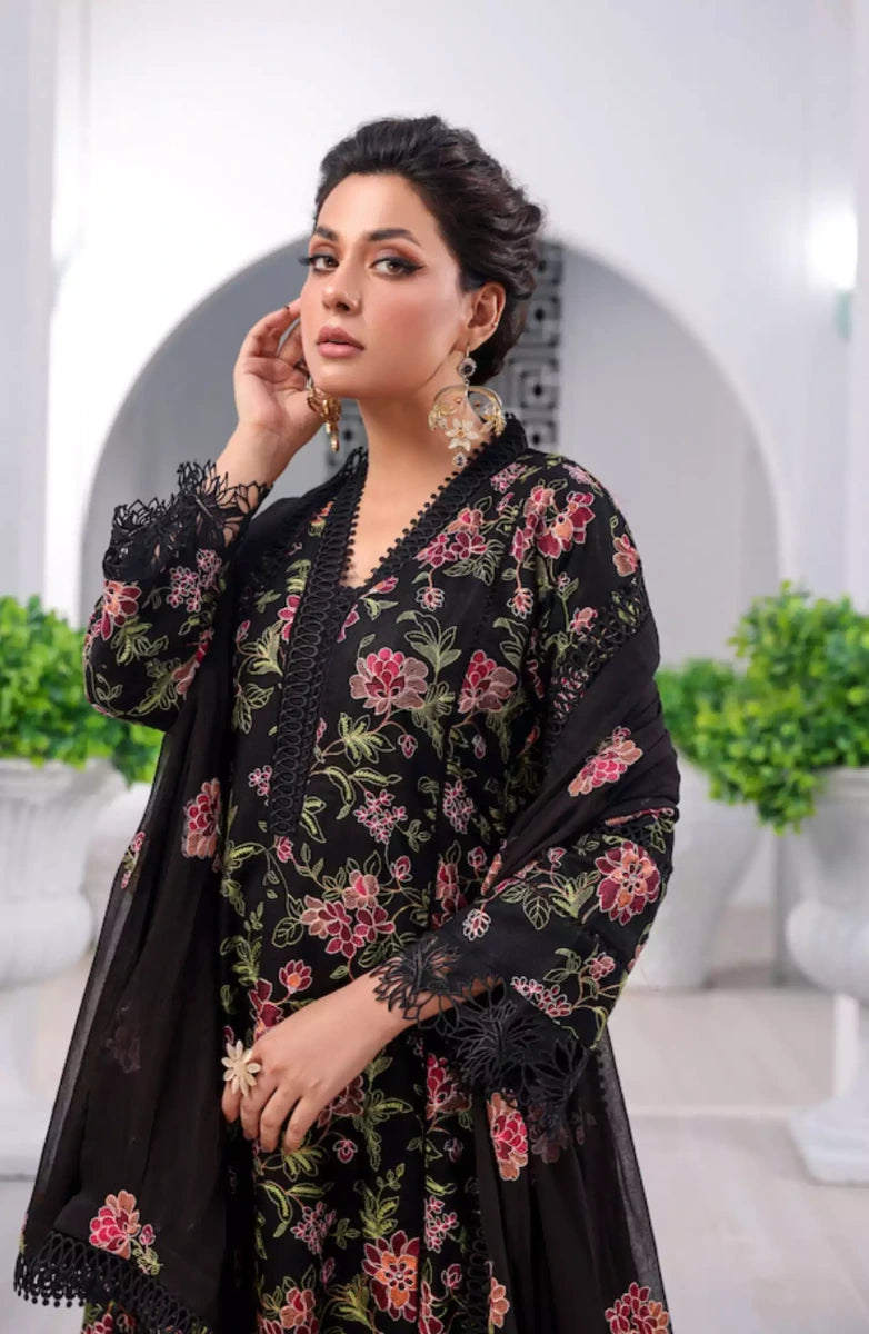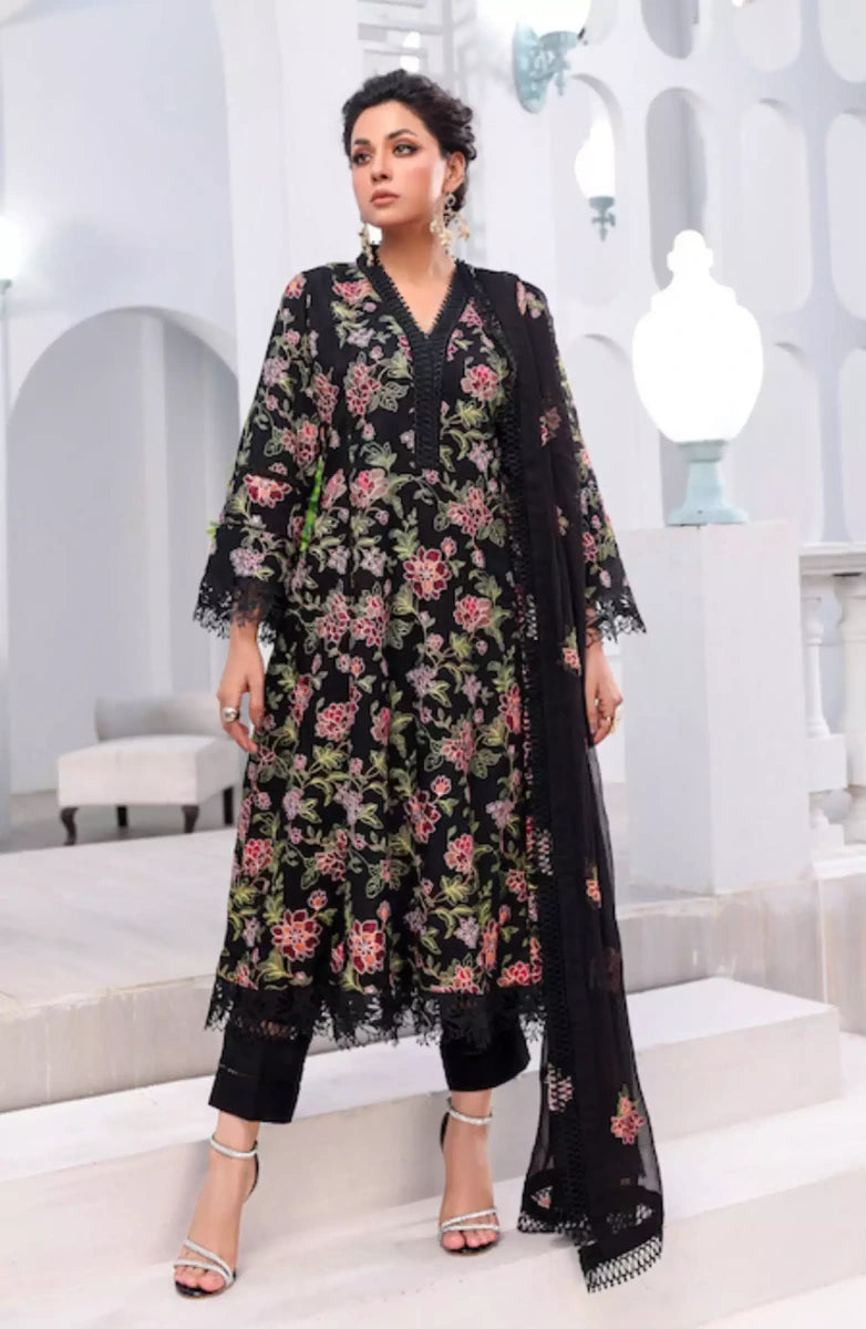 Mushq Darlings Wedding Embroidered Net Unstitched 3 Piece Suit - Malika - MQ25DRW - Black - Festive Collection