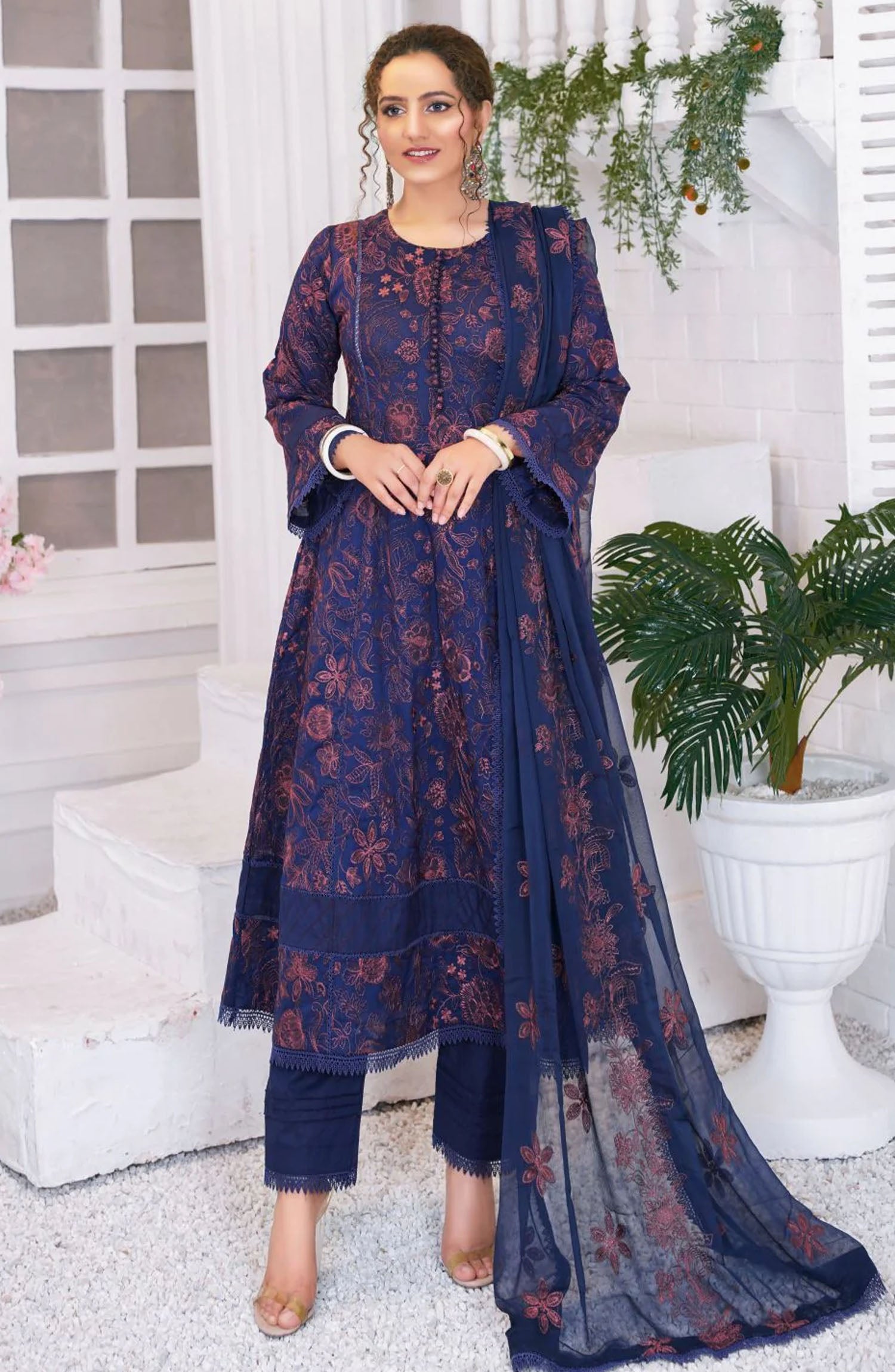 The standard style comes as a long-sleeved kameez with dupatta and trouser/shawlar.