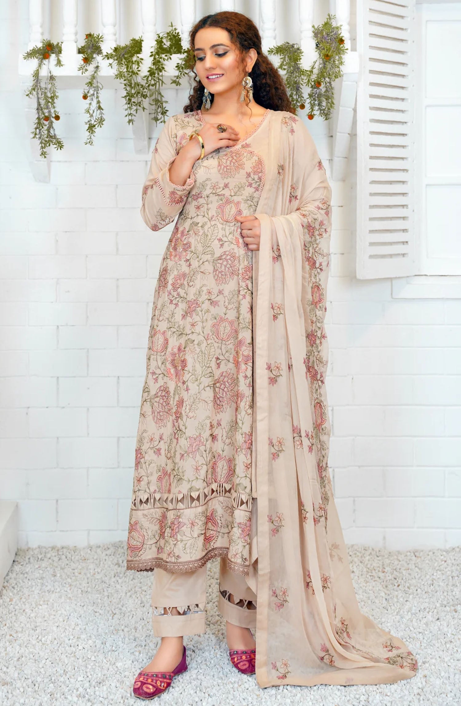The standard style comes as a long-sleeved kameez with dupatta and trouser/shawlar.
