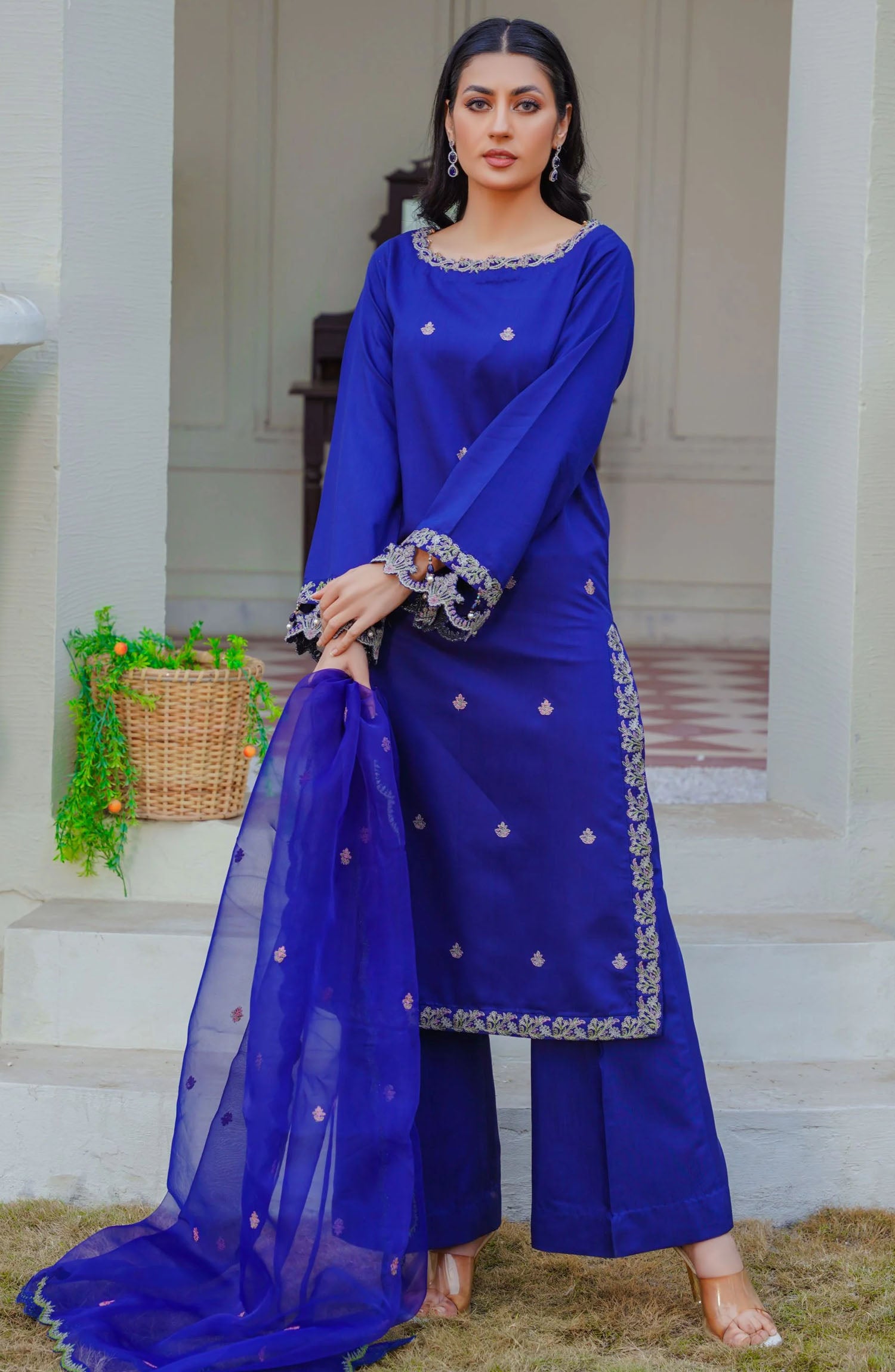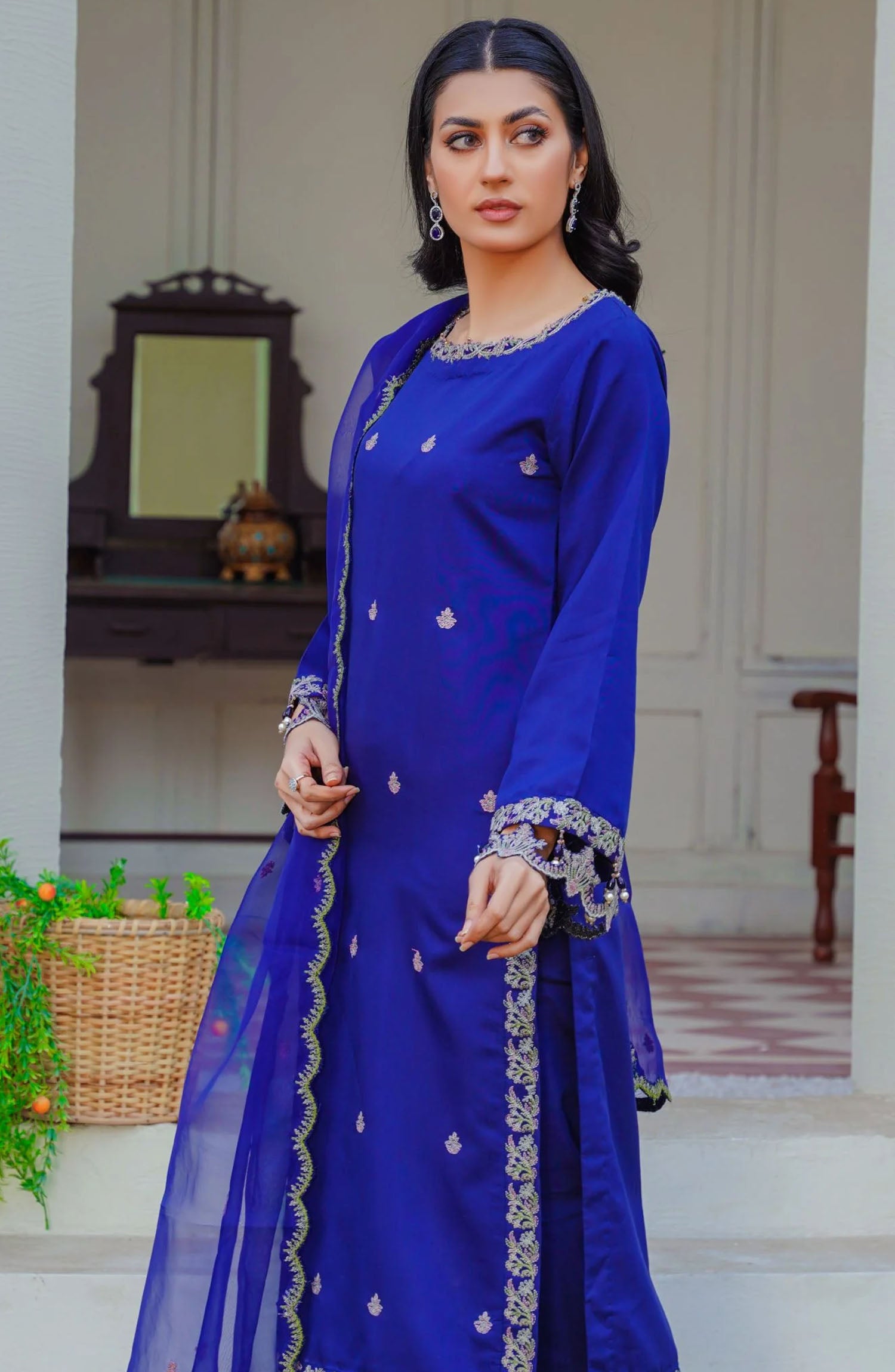 Threads N Weaves Embroidered Viscose Stitched 3 Piece Suit - RTWV24103S - TNW25PV - Blue - Winter Collection