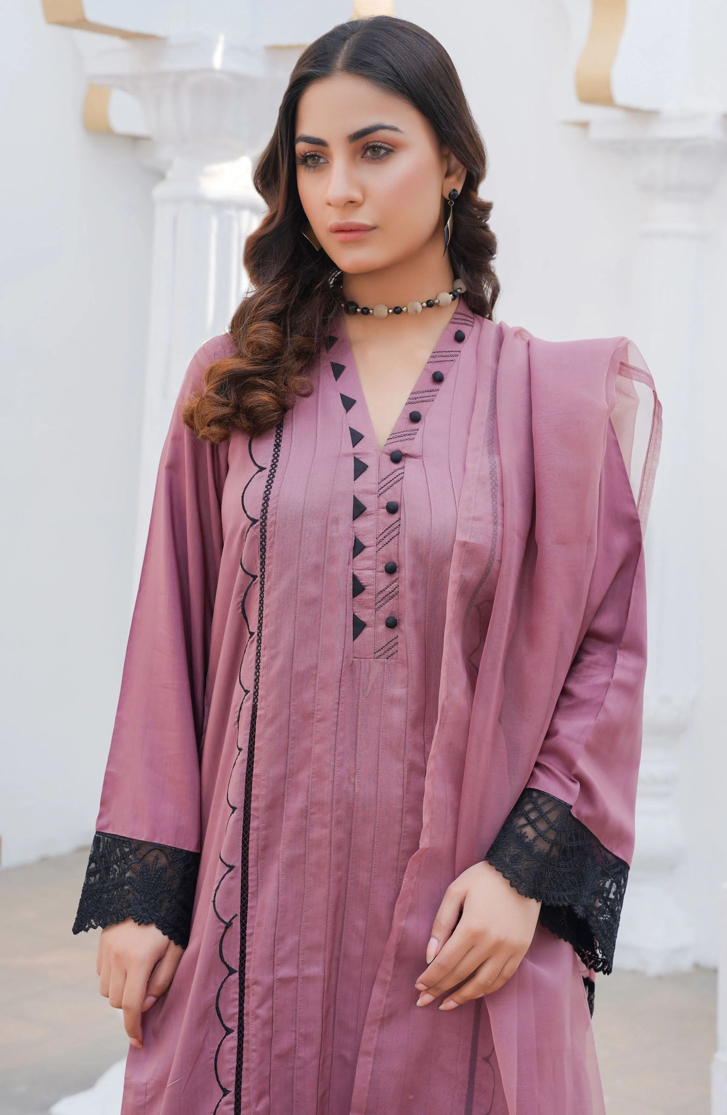 Threads N Weaves Embroidered Viscose Stitched 3 Piece Suit - RTWV24104S - TNW25PV - Pink - Winter Collection