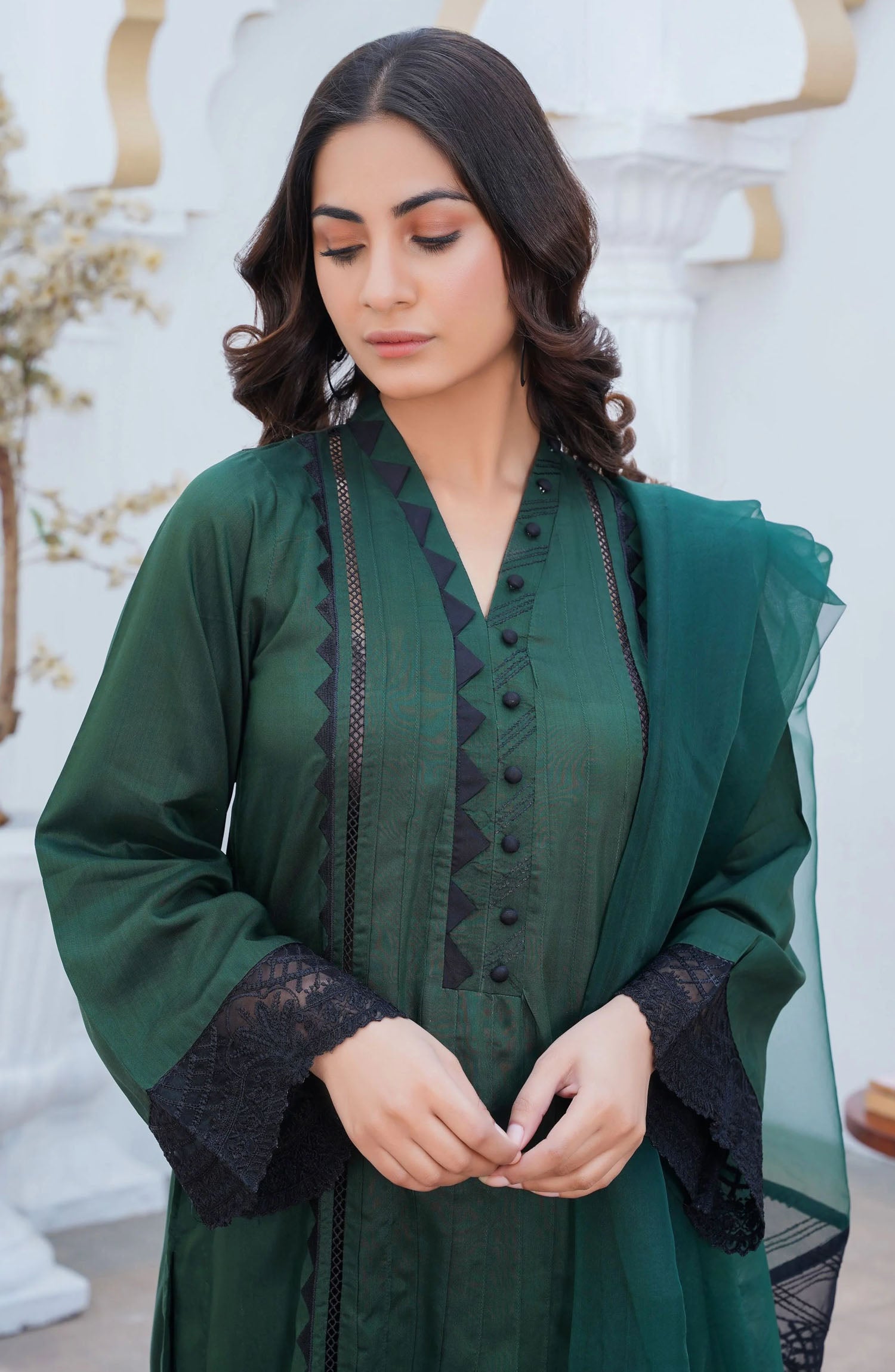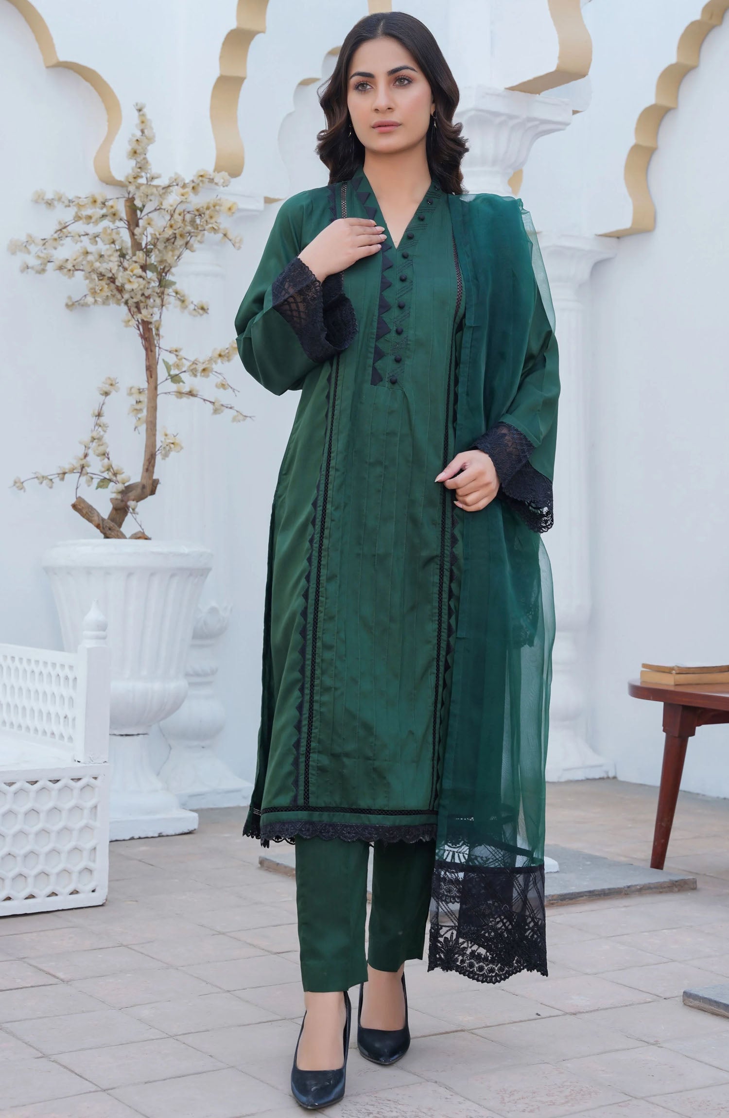 Threads N Weaves Embroidered Viscose Stitched 3 Piece Suit - RTWV24106S - TNW25PV - Green - Winter Collection
