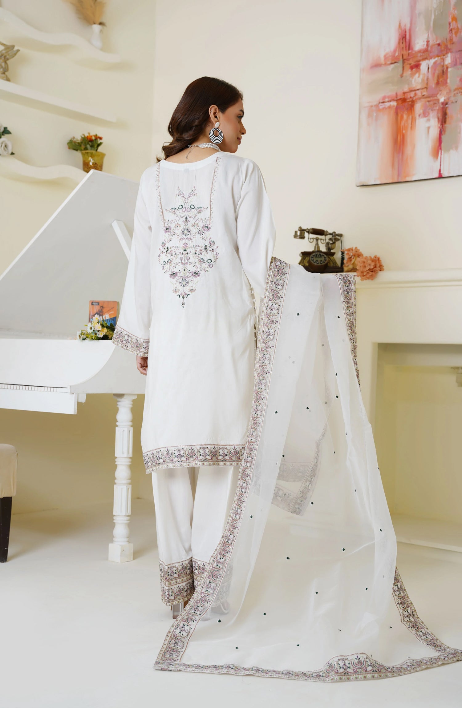 · Color: Ivory white with soft multi-tone embroidery