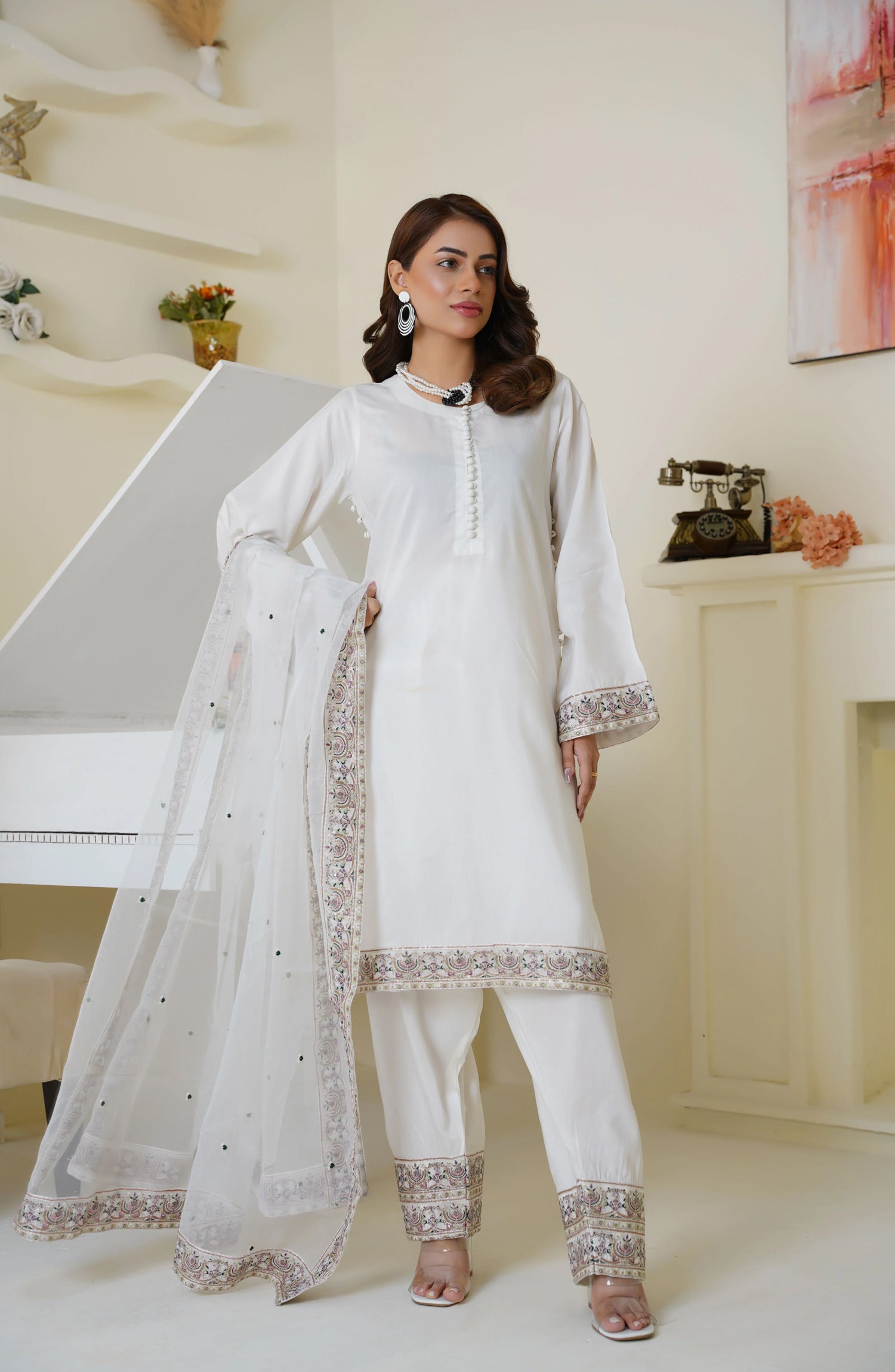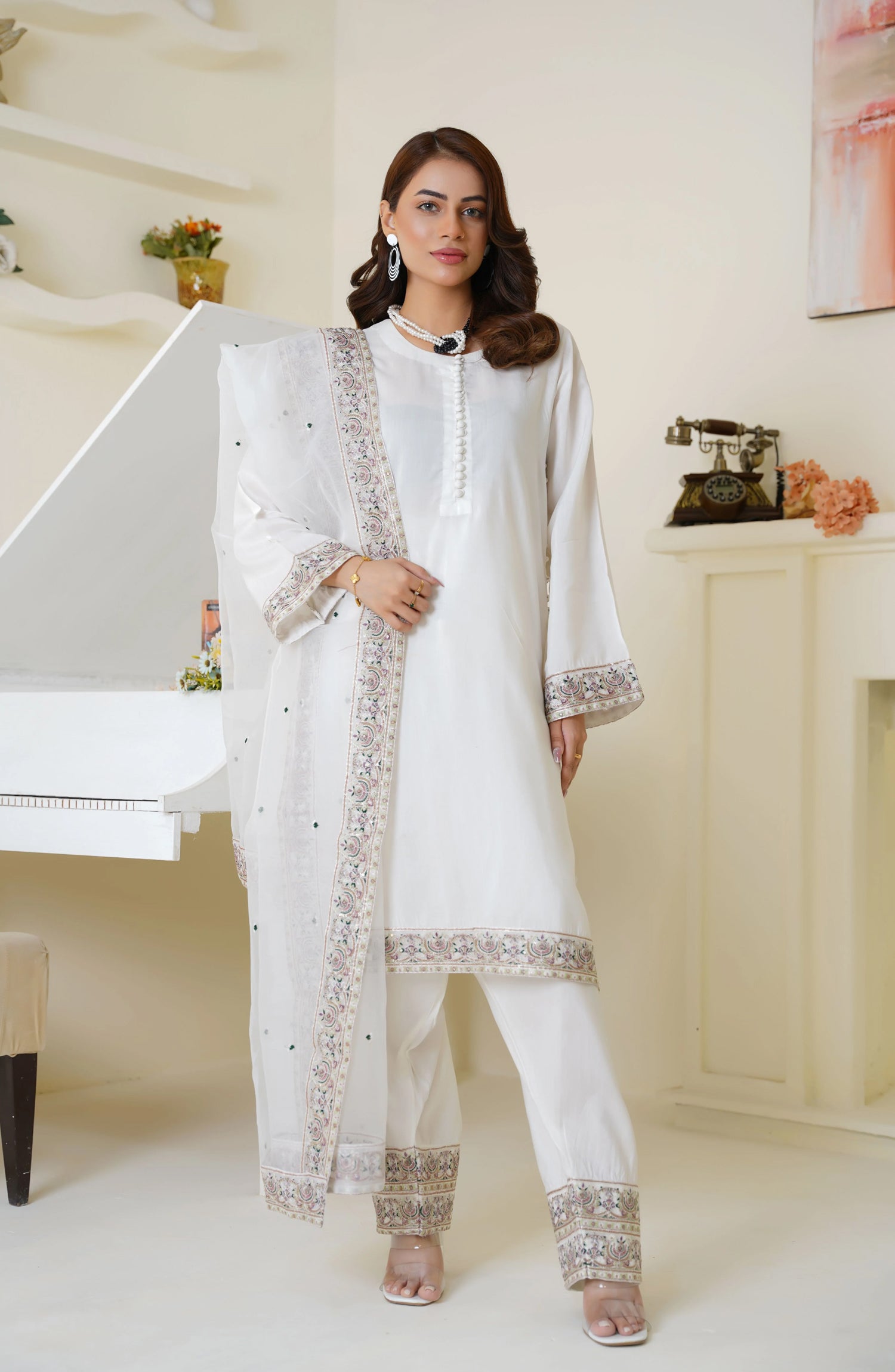 · Lightweight organza dupatta with border and subtle embellishments