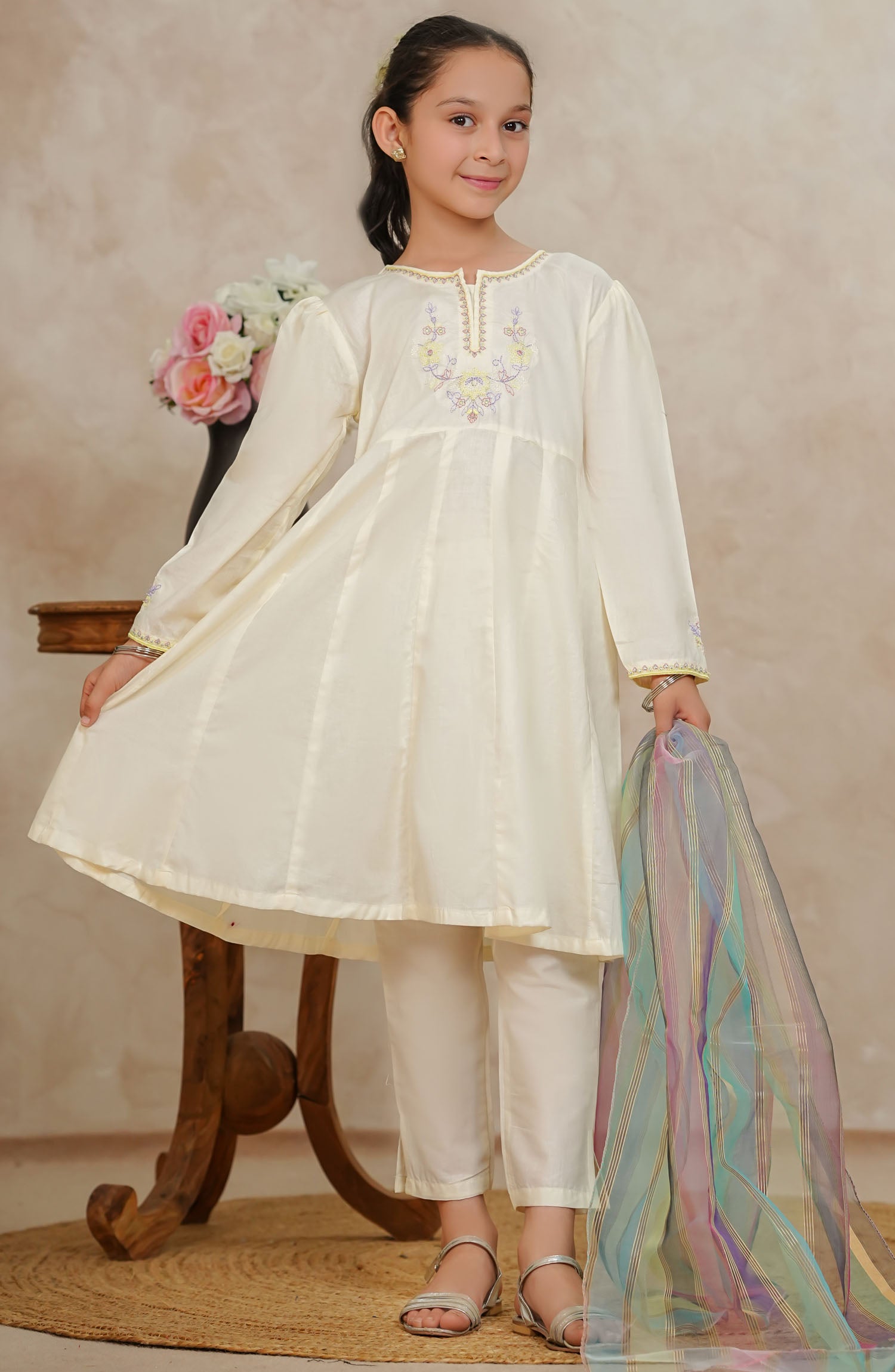 Home Tiny Tales by Amna Khadija Chikankari Lawn Stitched 3 Piece Suit - TTKP-01 - AM25TTKP - Off White - Girls Collection