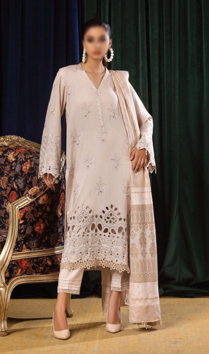 The standard style comes as a long-sleeved kameez with dupatta and trouser/shawlar.