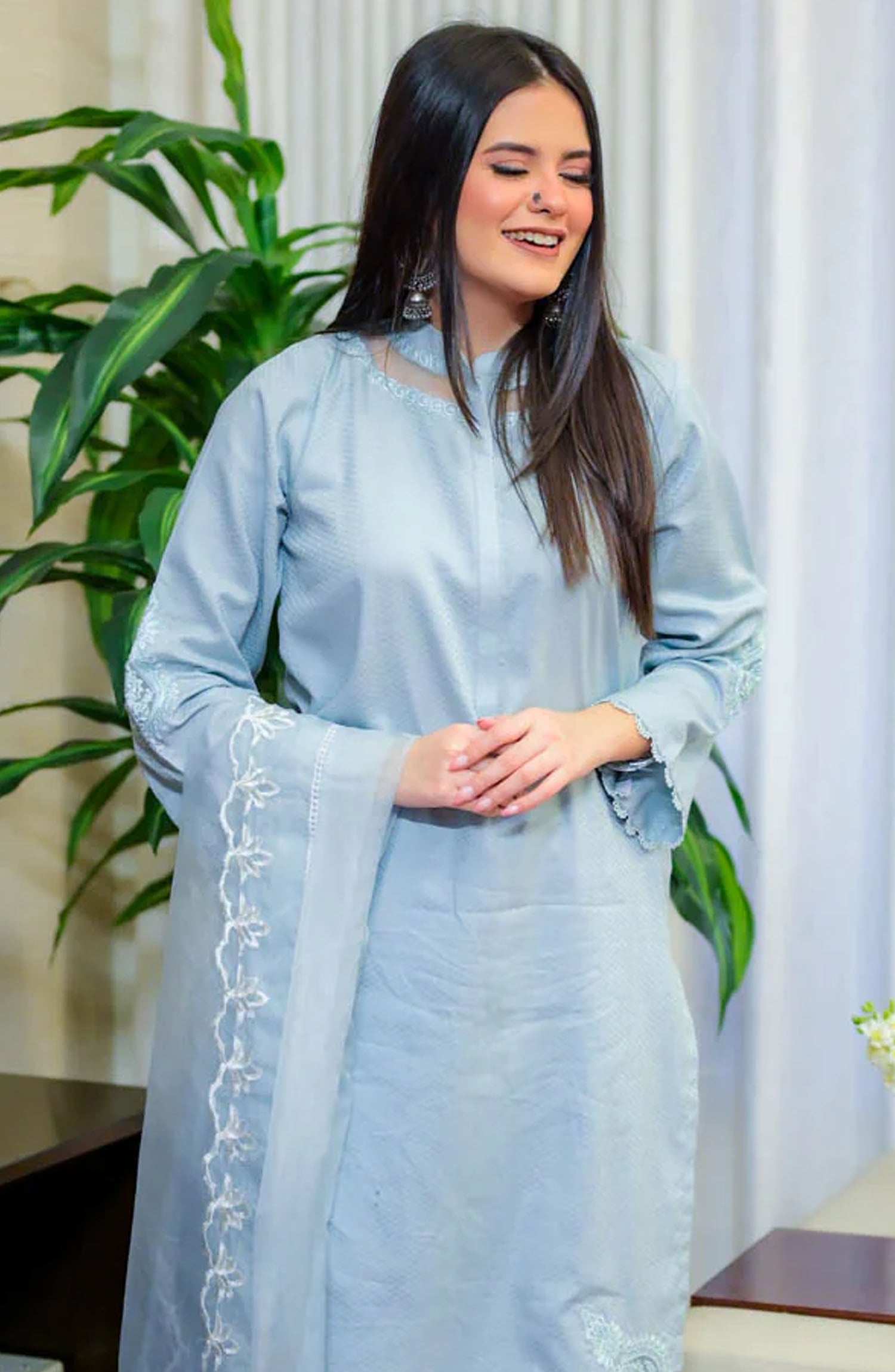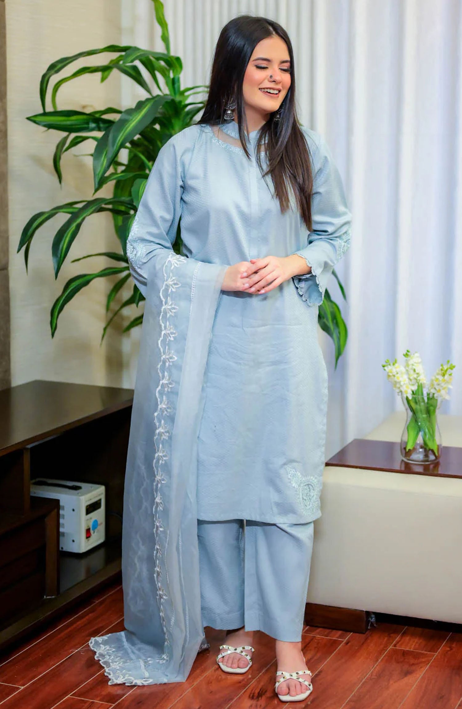TNG Embroidered Self Jacquard Stitched 3 Piece Suit - AR-001800 Anoosha - TNG25EC - Blue - Festive Collection