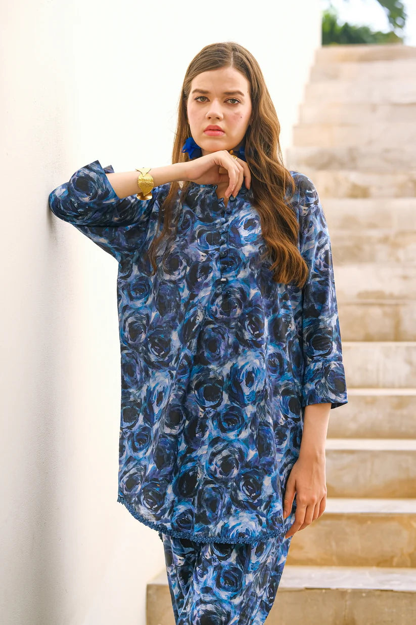 Experience tranquility in our "Tranquil" ensemble, a perfect blend of fashion and comfort. Made from breathable cotton lawn fabric, this two-piece outfit in Color Blue features serene watercolor blue flowers, capturing the essence of summer. Embrace relaxed elegance with this stylish ensemble tailored for the woman.