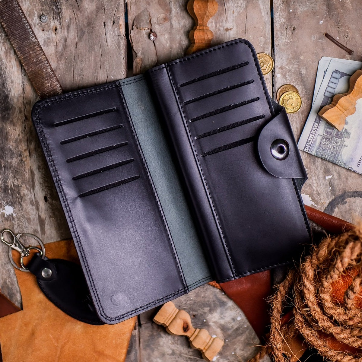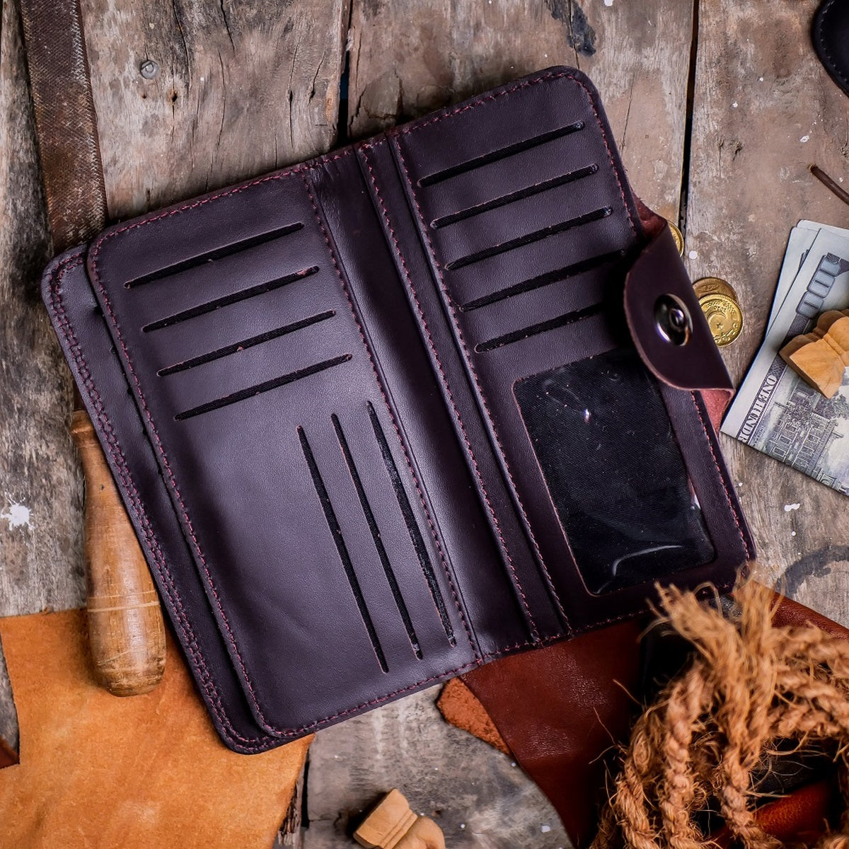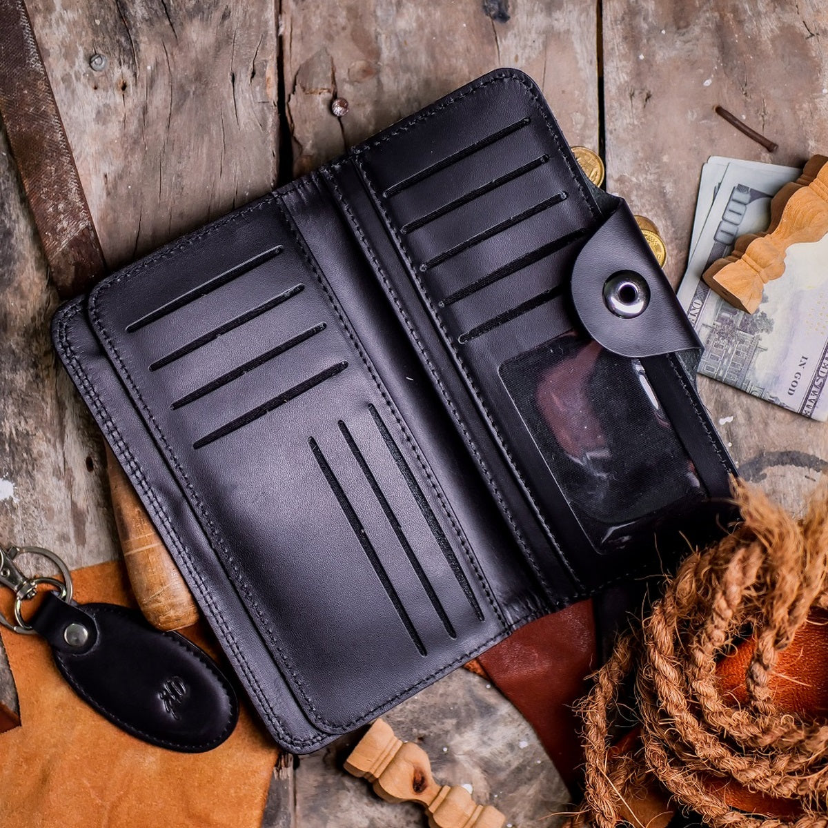 Upgrade your style game with our Tri-Fold Pure Leather Long Wallet
